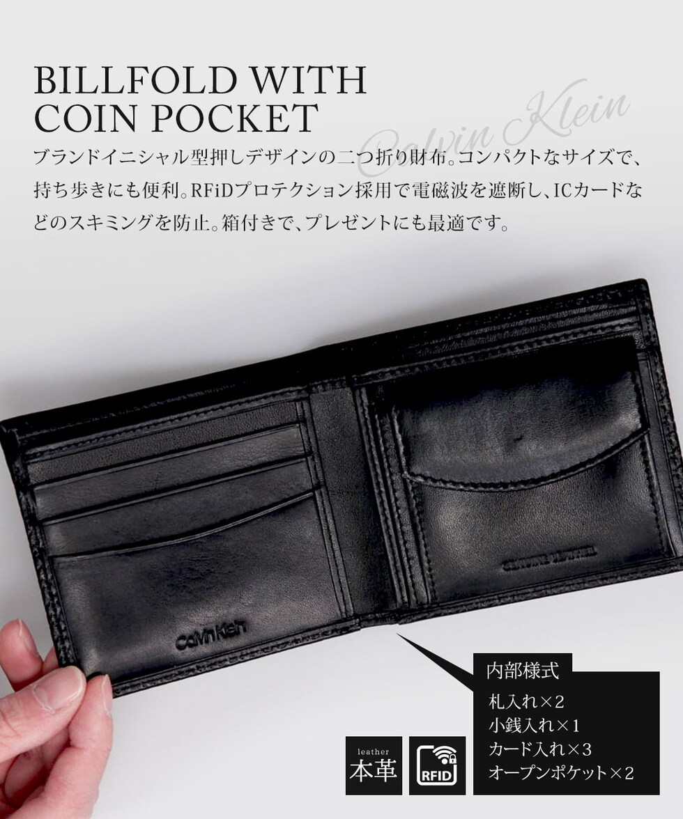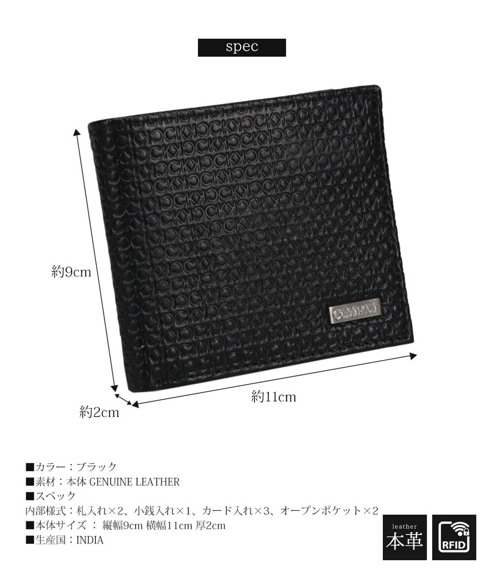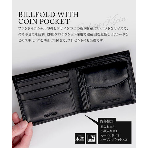 カルバンクライン 財布 二つ折り メンズ ブランド 本革 スキミング防止 シンプル 黒 ブラック CK Calvin Klein 31CK130007