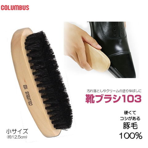 コロンブス クリーナー 靴 ブラシ 豚毛ブラシ 靴 シューズブラシ 豚毛 100% 靴ブラシ103 (小)col-brush103