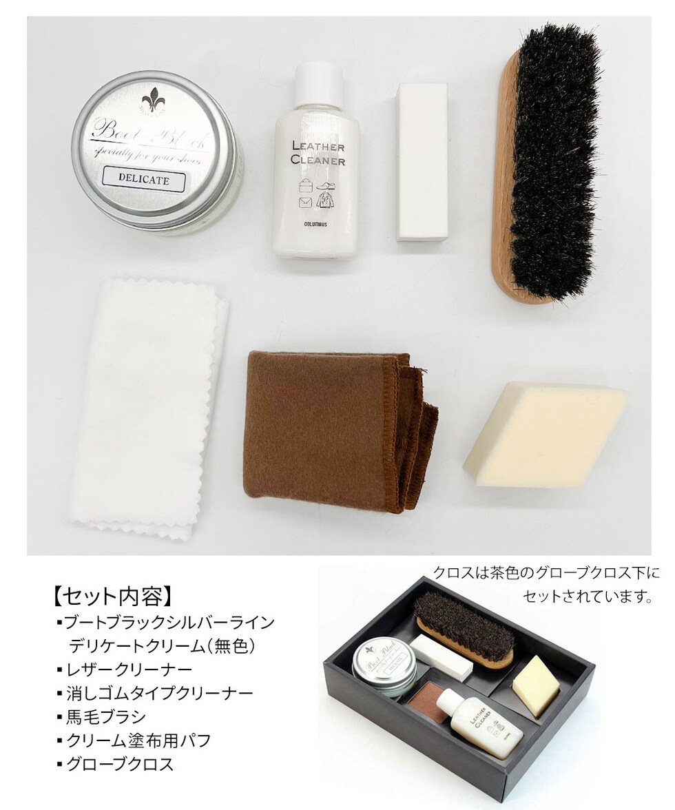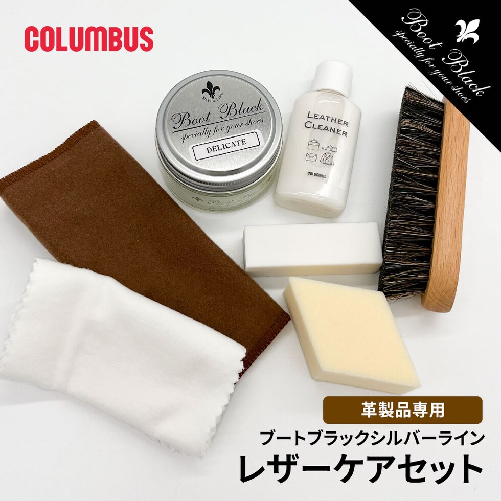 コロンブス レザーケア 靴磨きセット シュークリーナー 汚れ落とし ツヤ出し クロス スムース ブートブラック シルバーライン 革 バッグ 鞄 手入れ