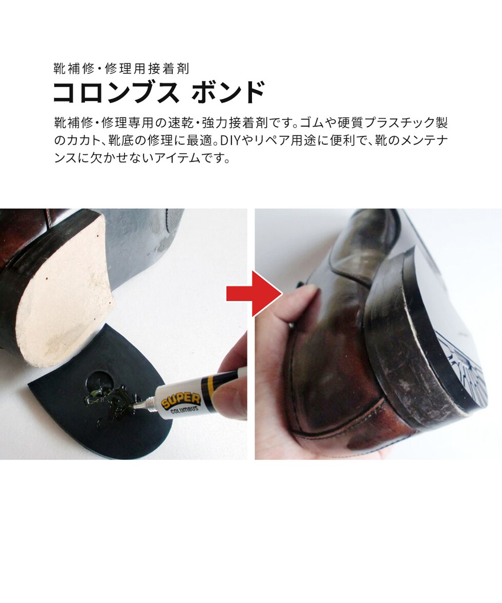 コロンブス 靴用ボンド 強力接着剤 靴底修理 革補修 速乾 有機溶剤 クロロプレンゴム アセトン シクロヘキサン ノルマルヘキサン 靴底補強 日本製