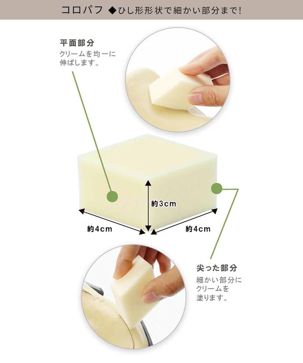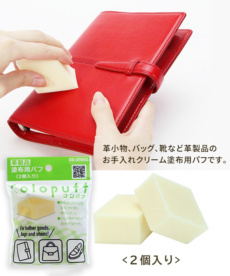 コロンブス パフ クリーム塗布 靴磨き シューケア お手入れ 革靴 本革 革小物 革靴 バッグ ベルト 財布 日本製 国産 スポンジ コロパフ