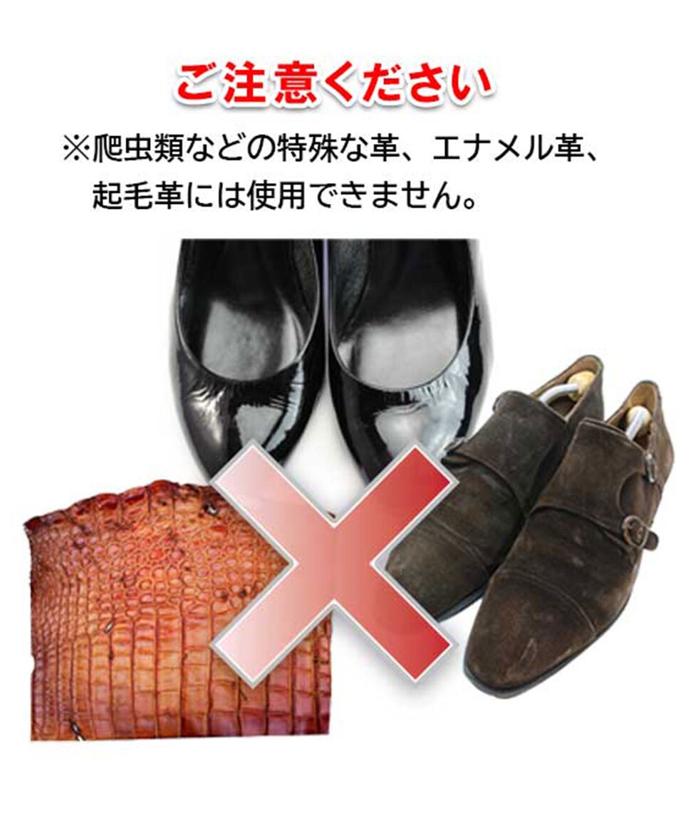 ◯爬虫類などの特殊な革、エナメル革には使用できません。