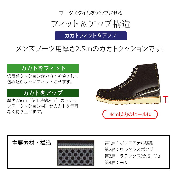 スタイルソリューション カカトフィット&アップ 低反発クッション インヒール 2.5cm シークレット 美脚 ブラック ウエッジソール 歩きやすい メンズ インソール 衝撃吸収 疲労予防 防痛 肉厚 ふかふか クッション 中敷き 脚長効果 シークレットブーツ 膝位置UP