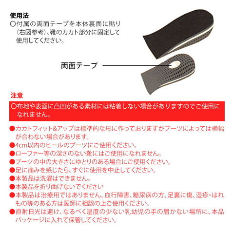 カカトフィット&アップは標準的な形に作っておりますがブーツによっては横幅が合わない場合があります。