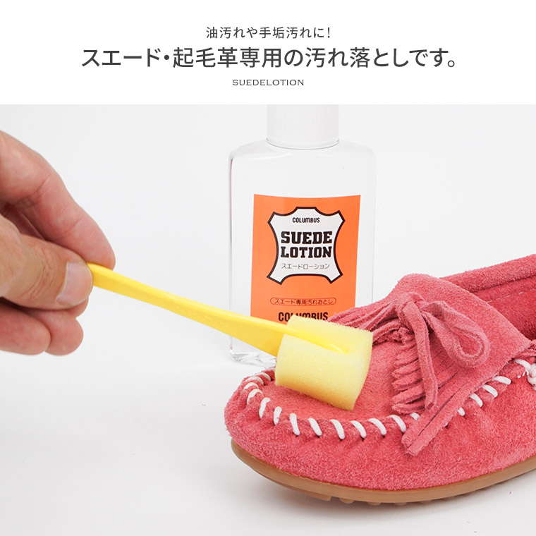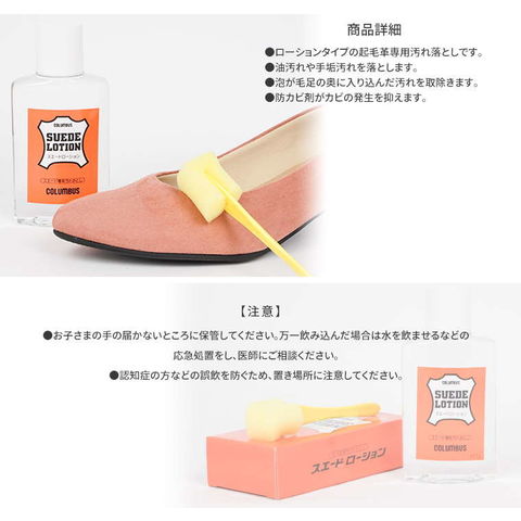 コロンブス スエードローション 起毛革専用汚れ落とし カビ止め スポンジブラシ付き シューケア 起毛革製品 お手入れ 靴 スエード ヌバック ベロア バックスキン ムートンブーツ バッグ 靴 ジャケット 手垢 油汚れ 防カビ カビ予防 ケア用品 col-suedelotion