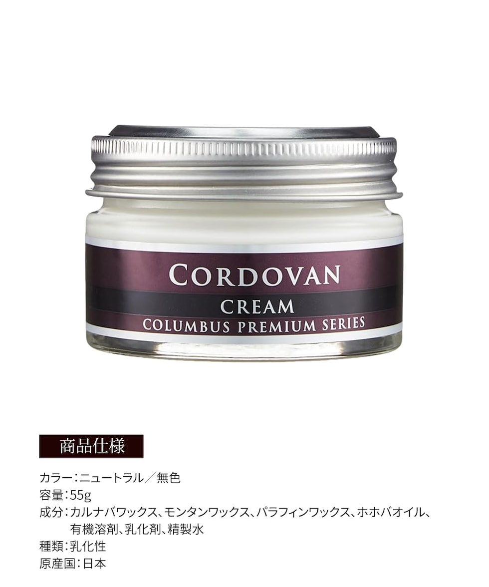 コードバンの風合いを保つためにカルナバなどのワックス成分を多く配合したクリーム。
