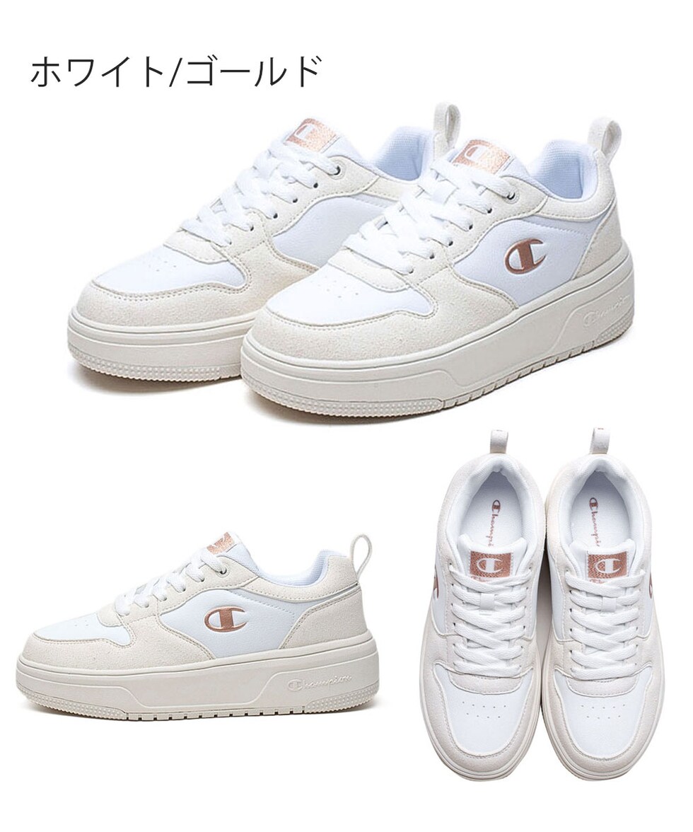 チャンピオン スニーカー レディース ローカット 厚底 スポーツ ジュニア 通学 学校 紐 靴 白 ホワイト Champion S11724