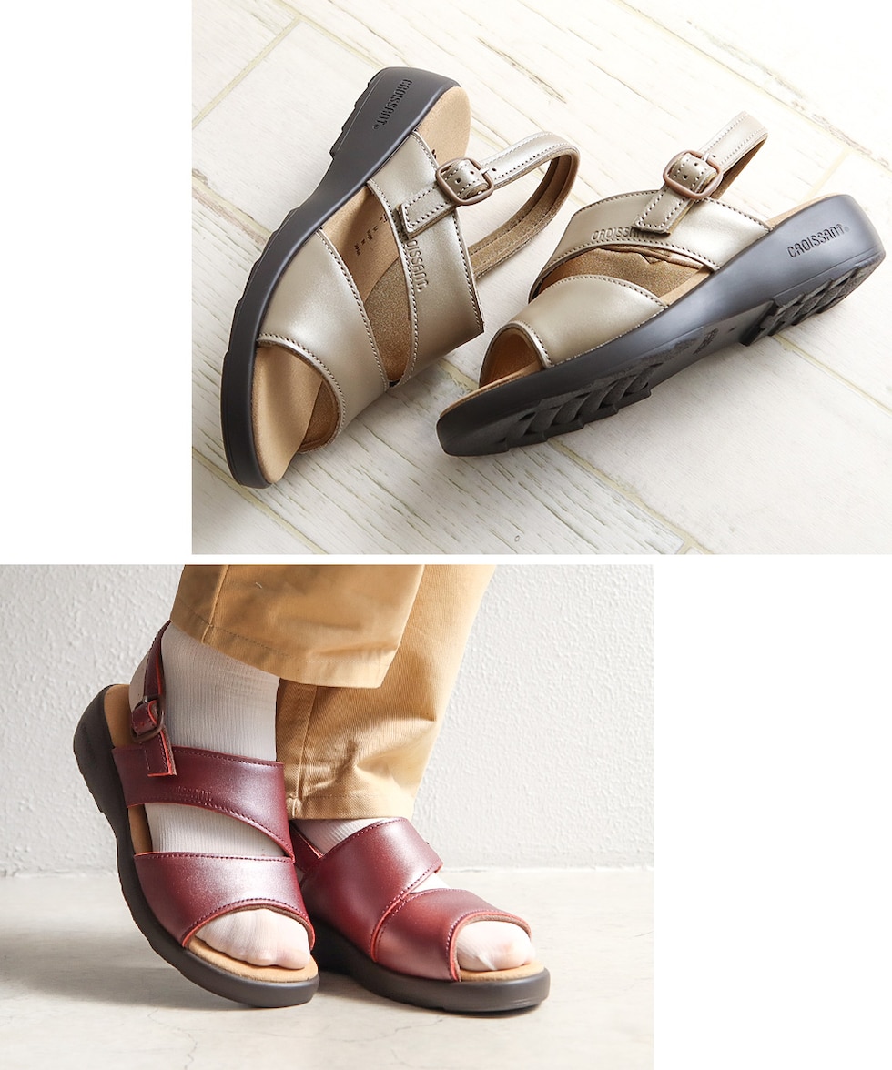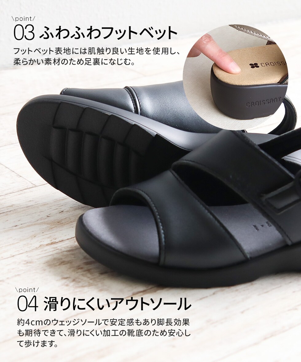 クロワッサン サンダル レディース ウェッジソール 靴 オフィスサンダル 黒 ブラウン キャメル ブロンズ ワイン 4598 CROISSANT