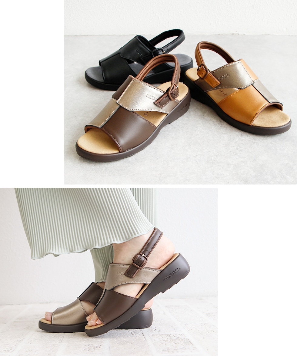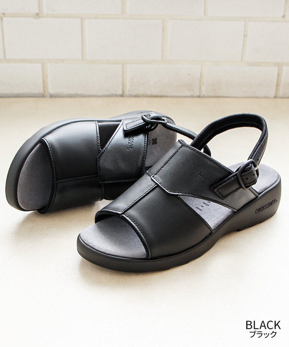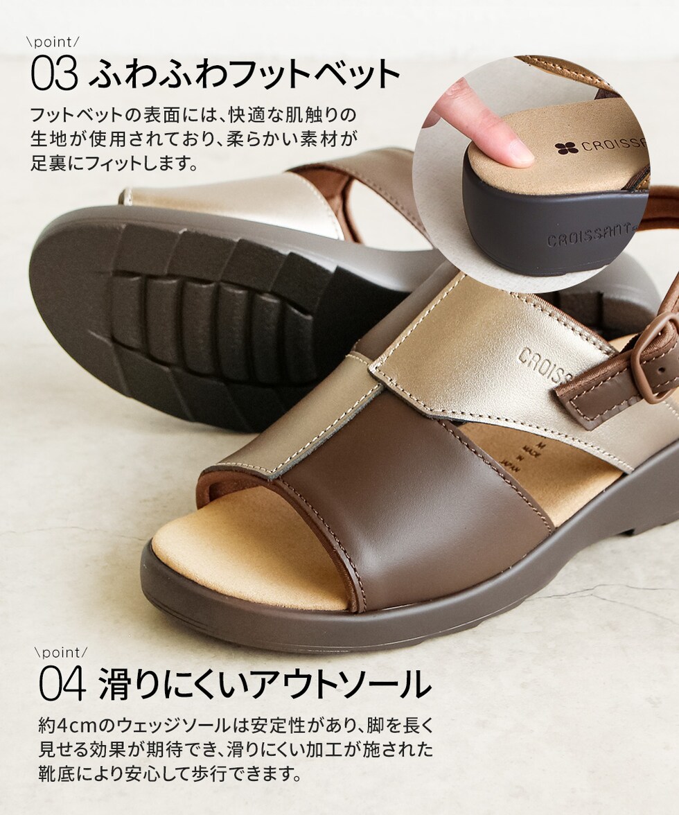 サンダル レディース ウェッジ ソール コンフォート 厚底 痛くない オフィス 美脚 疲れにくい 幅広 甲高 ゴム バックストラップ 日本製 国産 クロワッサン 4599