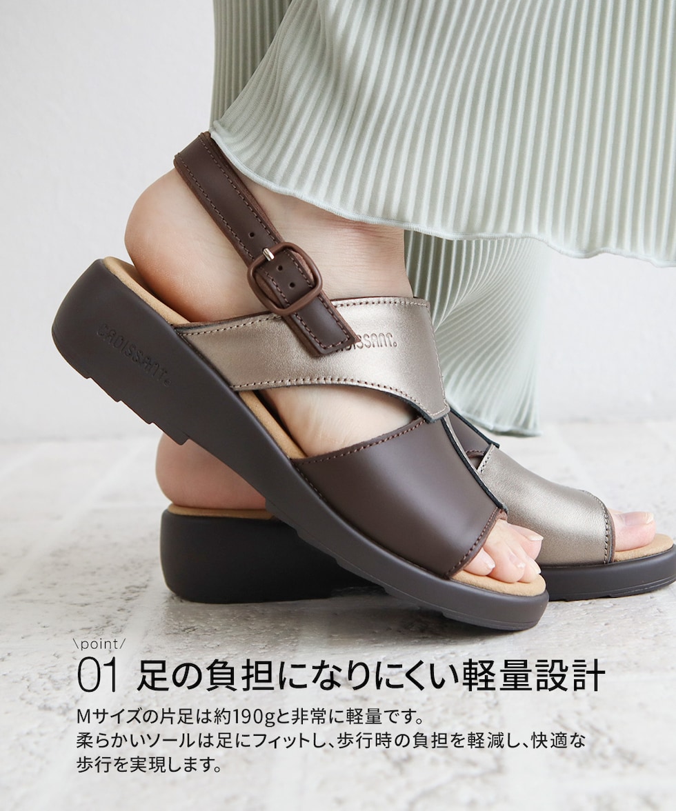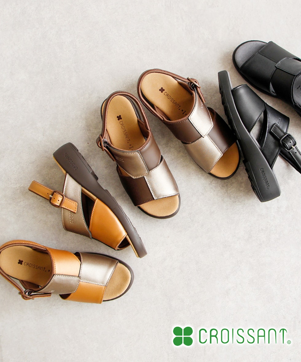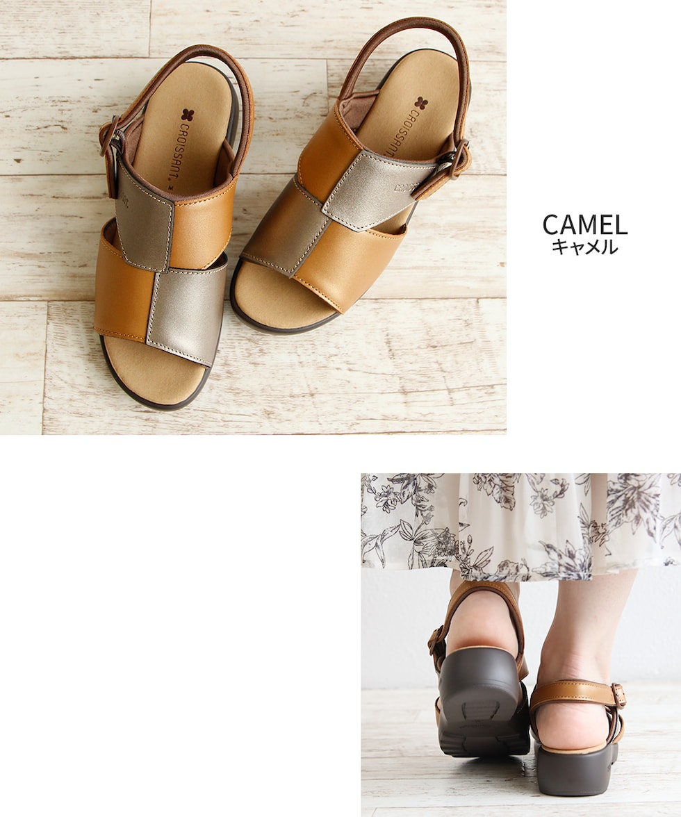 サンダル レディース ウェッジ ソール コンフォート 厚底 痛くない オフィス 美脚 疲れにくい 幅広 甲高 ゴム バックストラップ 日本製 国産 クロワッサン 4599