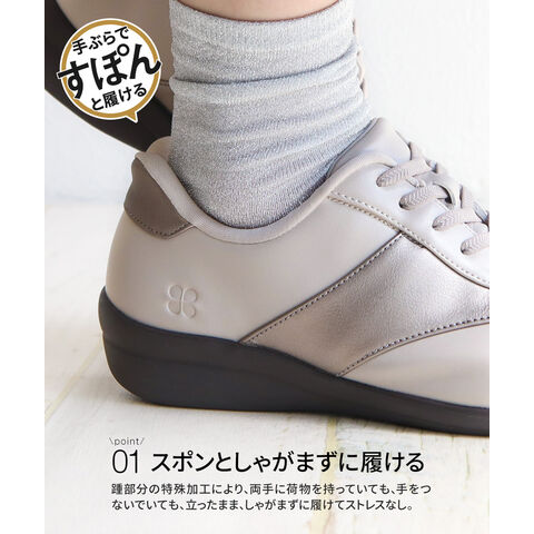 踵部分の特殊加工により、両手に荷物を持っていても、手をつないでいても、立ったまま、しゃがまずに履けてストレスなし。