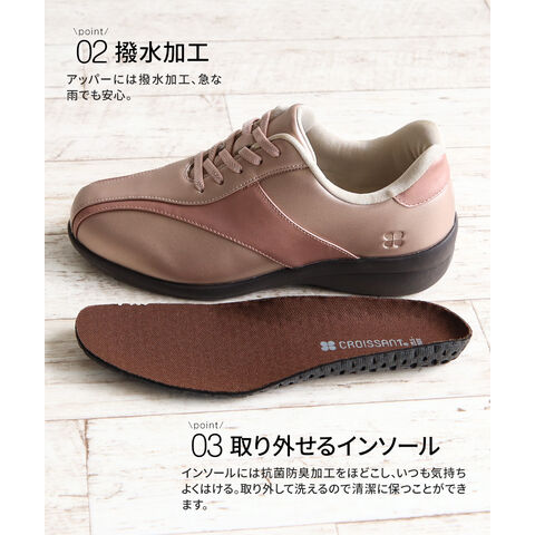 クロワッサン レディース スニーカー スリッポン 靴 ハンズフリー 4E 撥水 おしゃれ ブラック ピンク アイボリー 5101 CROISSANT