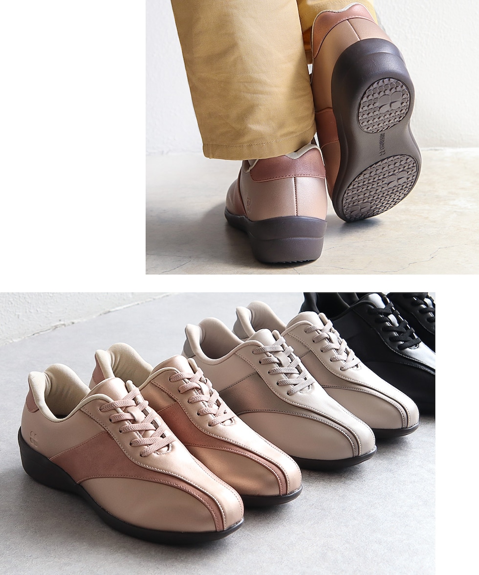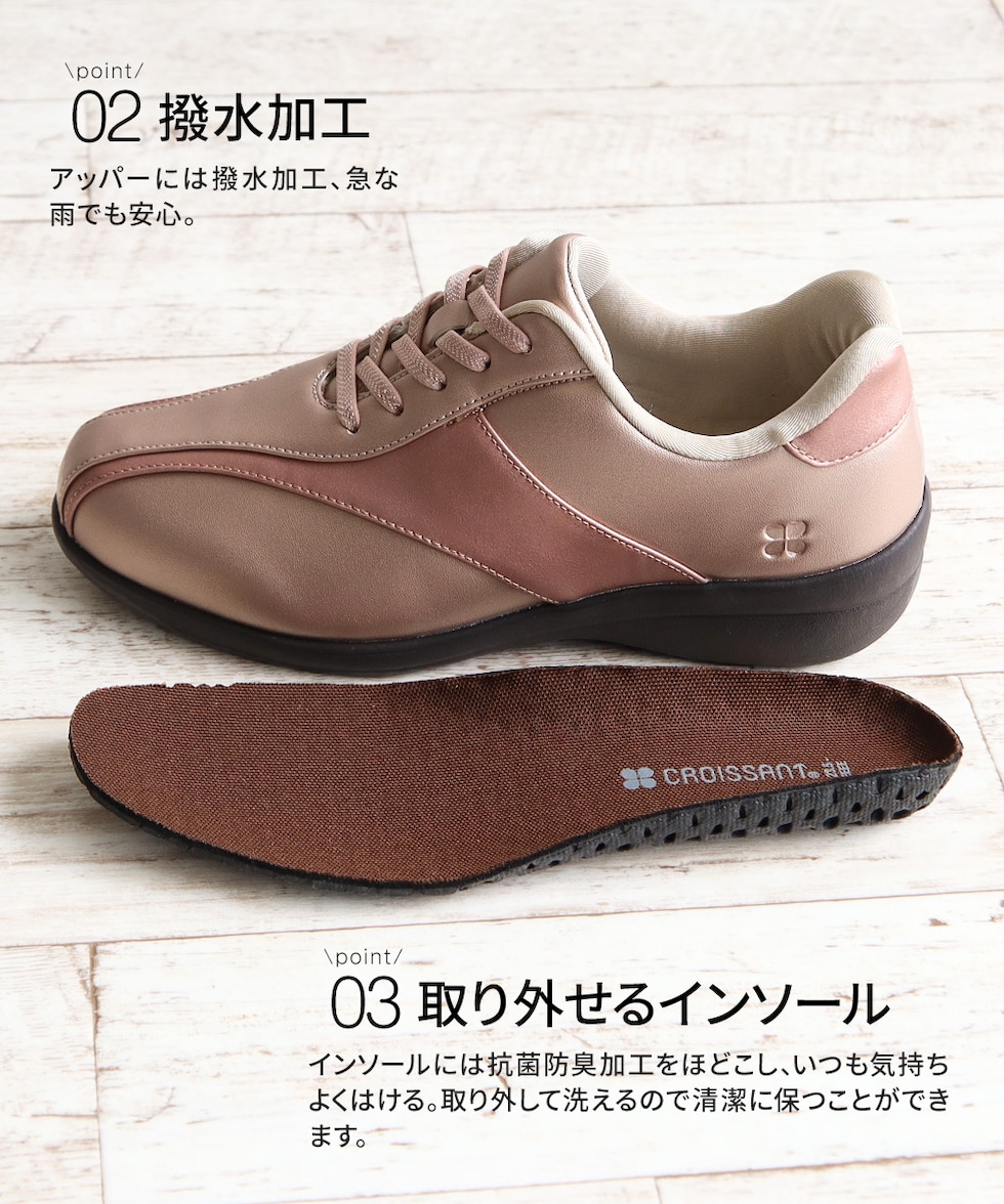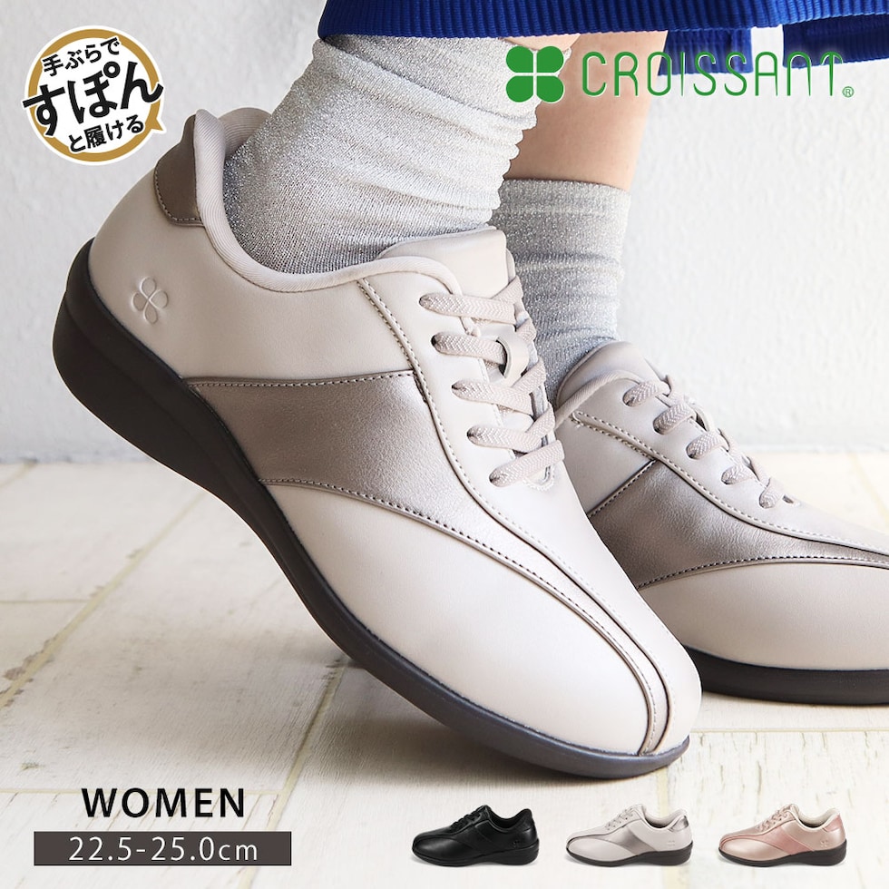 クロワッサン レディース スニーカー スリッポン 靴 ハンズフリー 4E 撥水 おしゃれ ブラック ピンク アイボリー 5101 CROISSANT