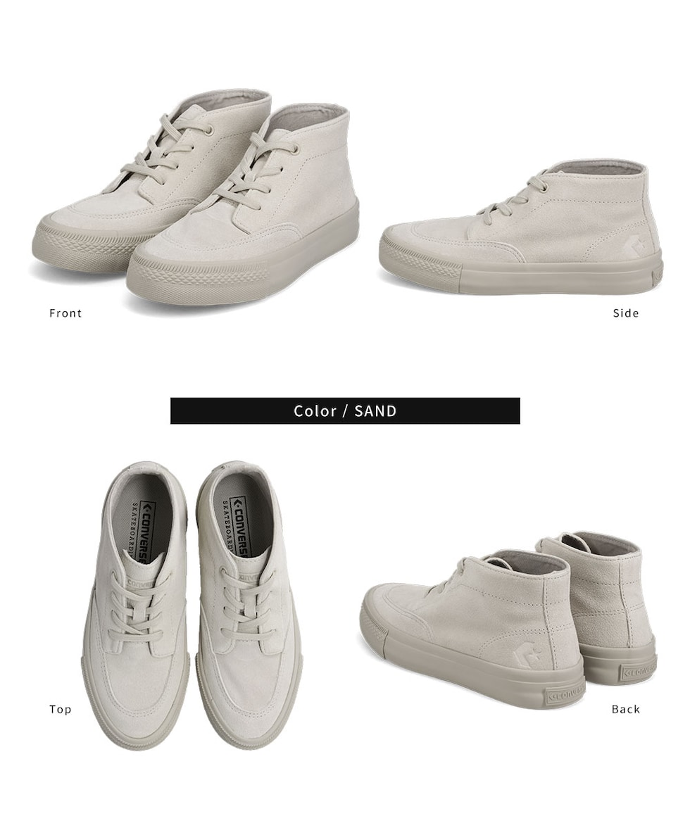 コンバース スケートボーディング スニーカー メンズ レディース ミッドカット スエード 本革 スケボー シューズ 紐靴 ハイカット ミドルカット シンプル チャッカブーツ 替え紐付き 丸紐 黒 ブラック ベージュ CONVERSE SKATEBOARDING CS CHUKKA SK MID