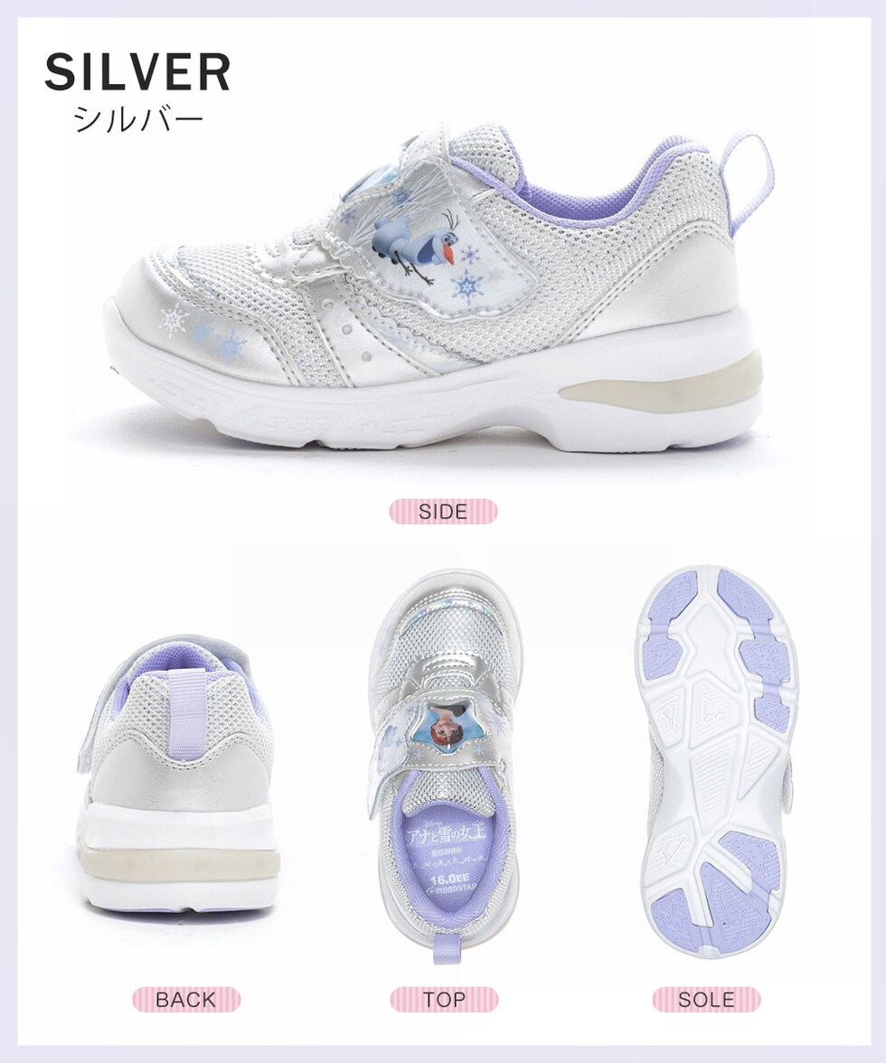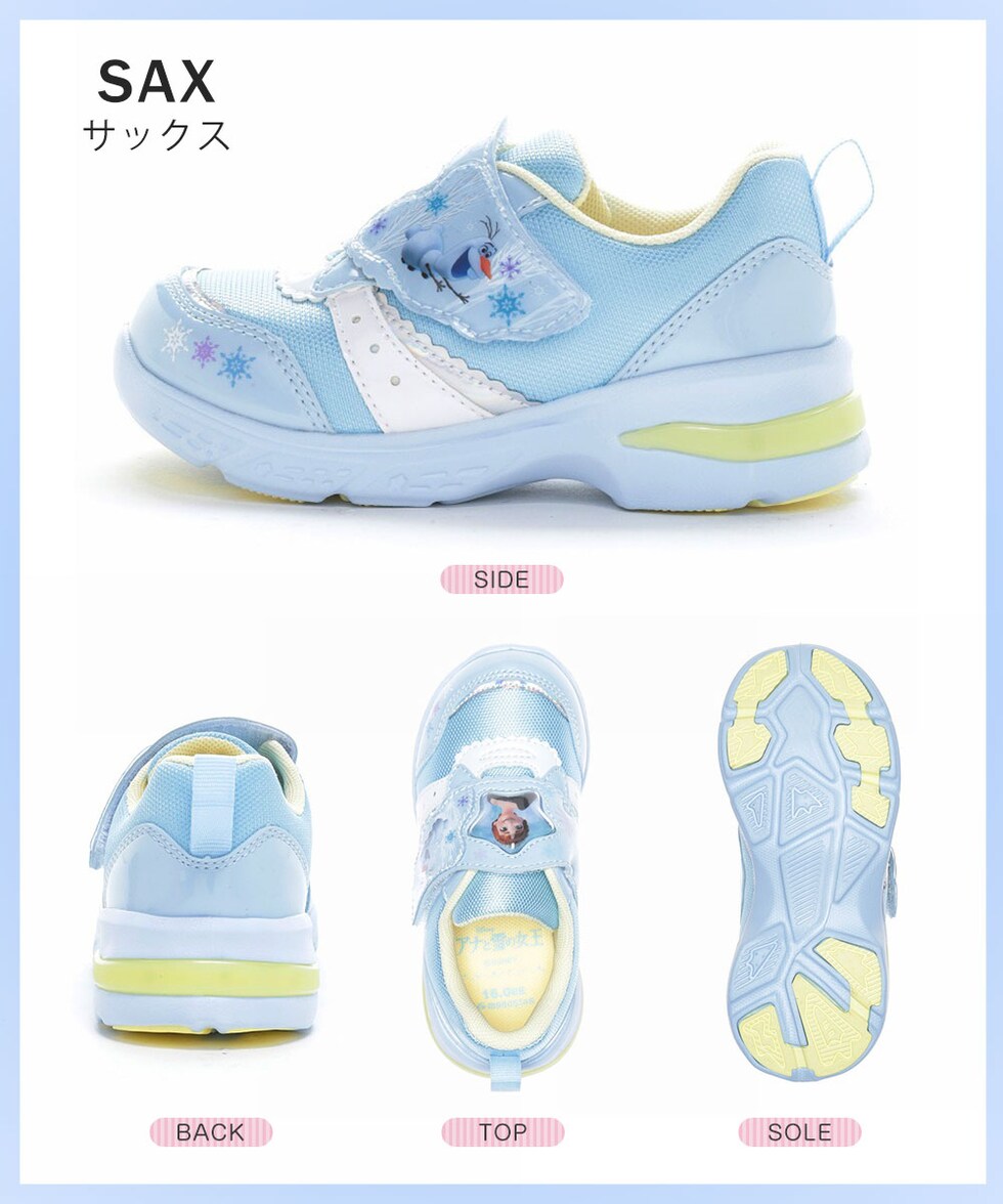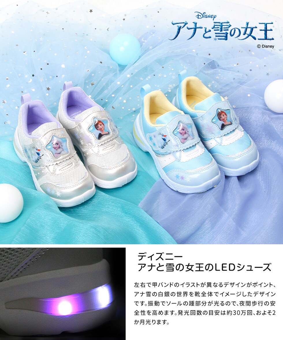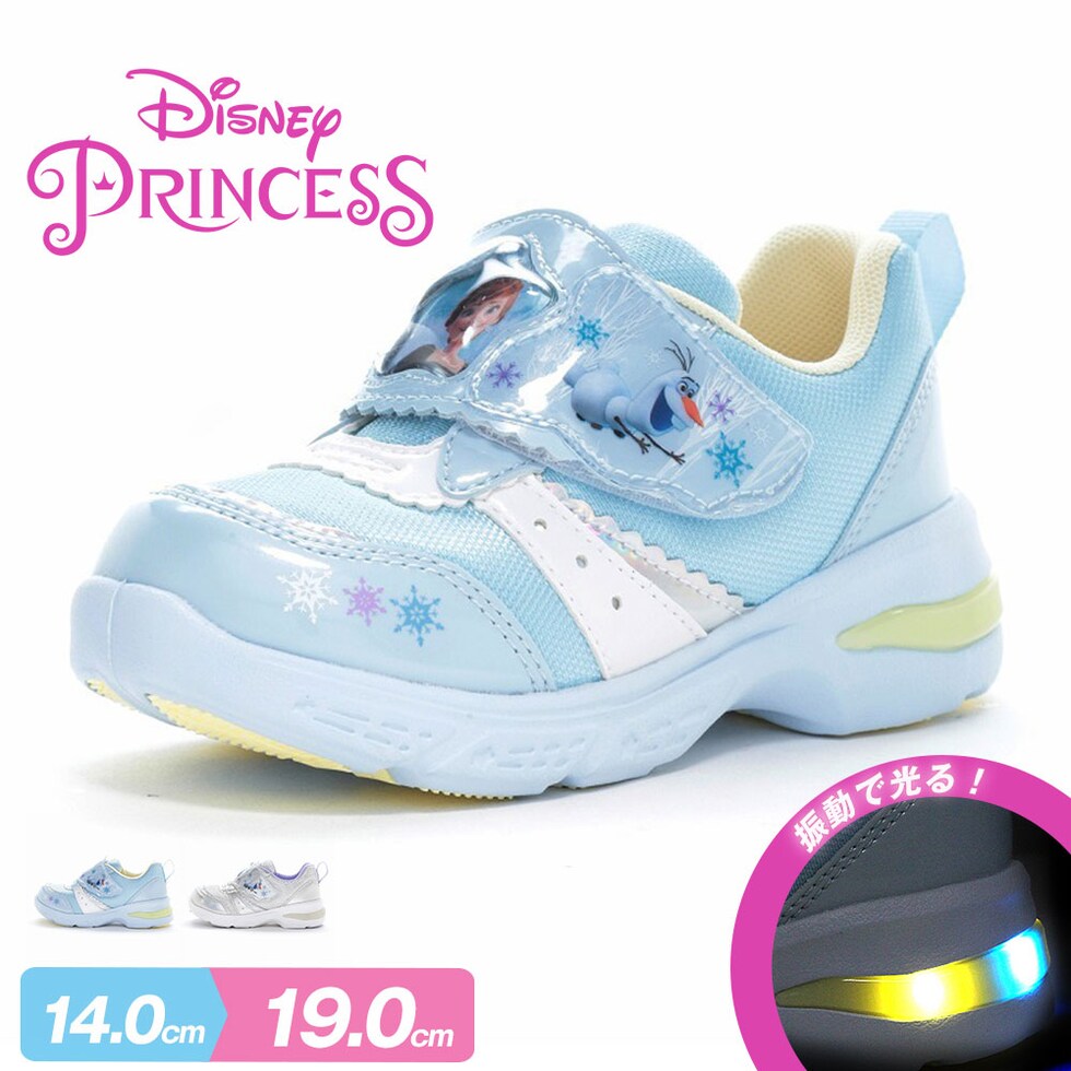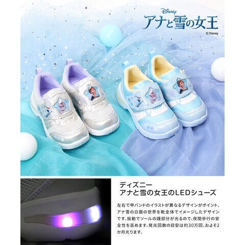 Disney キッズ スニーカー 光る 靴 子供 女の子 抗菌 防臭 軽量 面ファスナー キャラクター プリンセス LED シューズ アナ エルサ DN C1359LE ディズニー