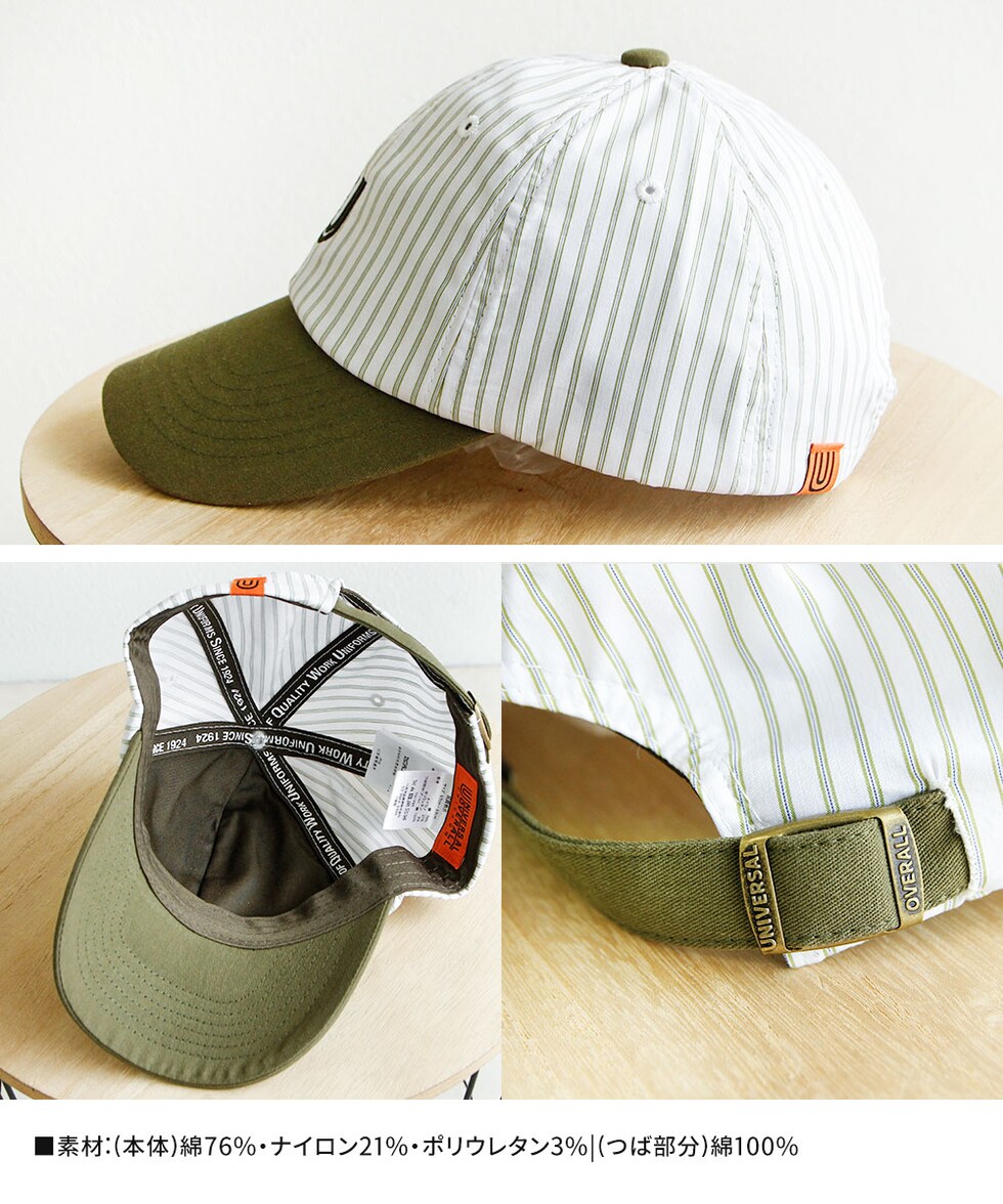 UNIVERSAL OVERALL キャップ メンズ レディース UV対策 ユニセックス ストライプ ベースボール カーブドバイザー 帽子 UO ds1998 ユニバーサルオーバーオール