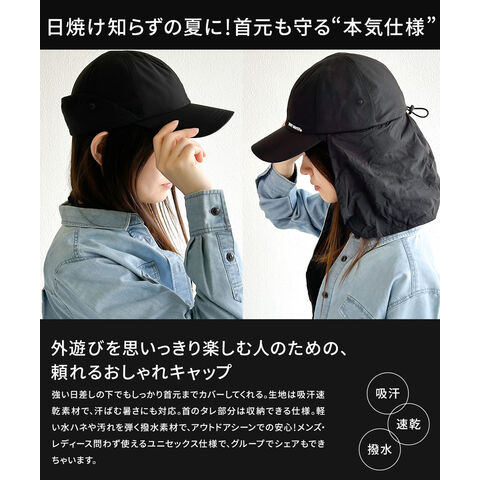 首のタレ部分は収納できる仕様だから、使わないときはスッキリ見せて、ふつうのキャップとしてかぶれるのも◎。