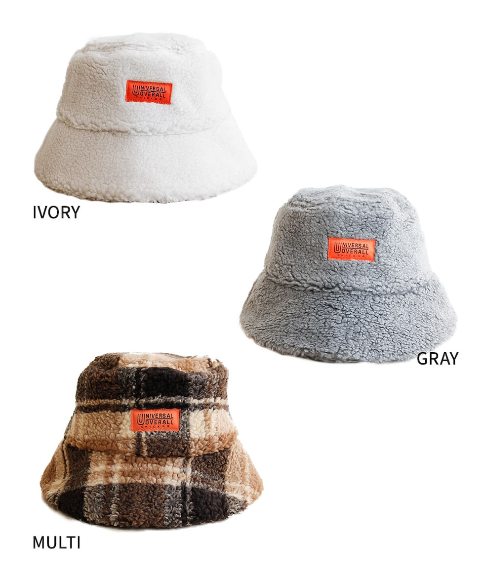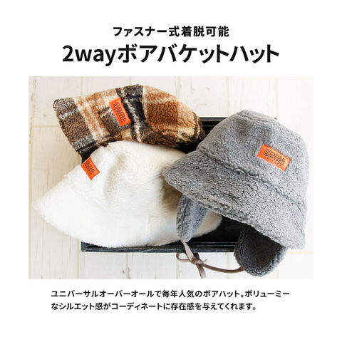 ユニバーサルオーバーオール バケットハット 2way ボア 帽子 ファスナー 秋 冬 ロゴ 白 UNIVERSAL OVERALL UO dw1714