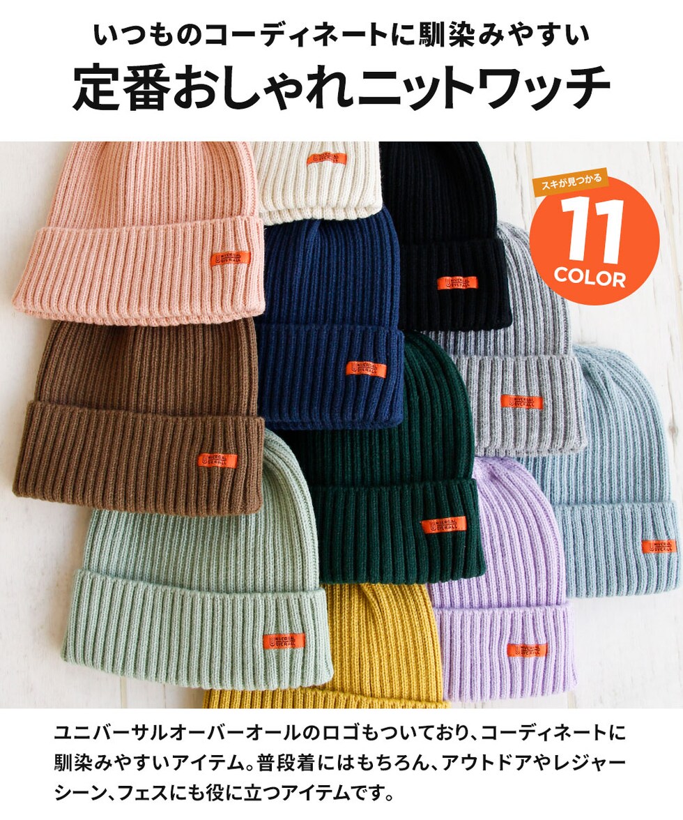 ユニバーサルオーバーオール ニット帽 メンズ レディース ワッチキャップ ビーニー リブ 帽子 秋 冬 ハット ロゴ uv 日除け アウトドア 釣り キャンプ レジャー フェス 登山 アメカジ ワッチ帽 黒 ブラック グレー ネイビー ベージュ UNIVERSAL OVERALL UO dw1725
