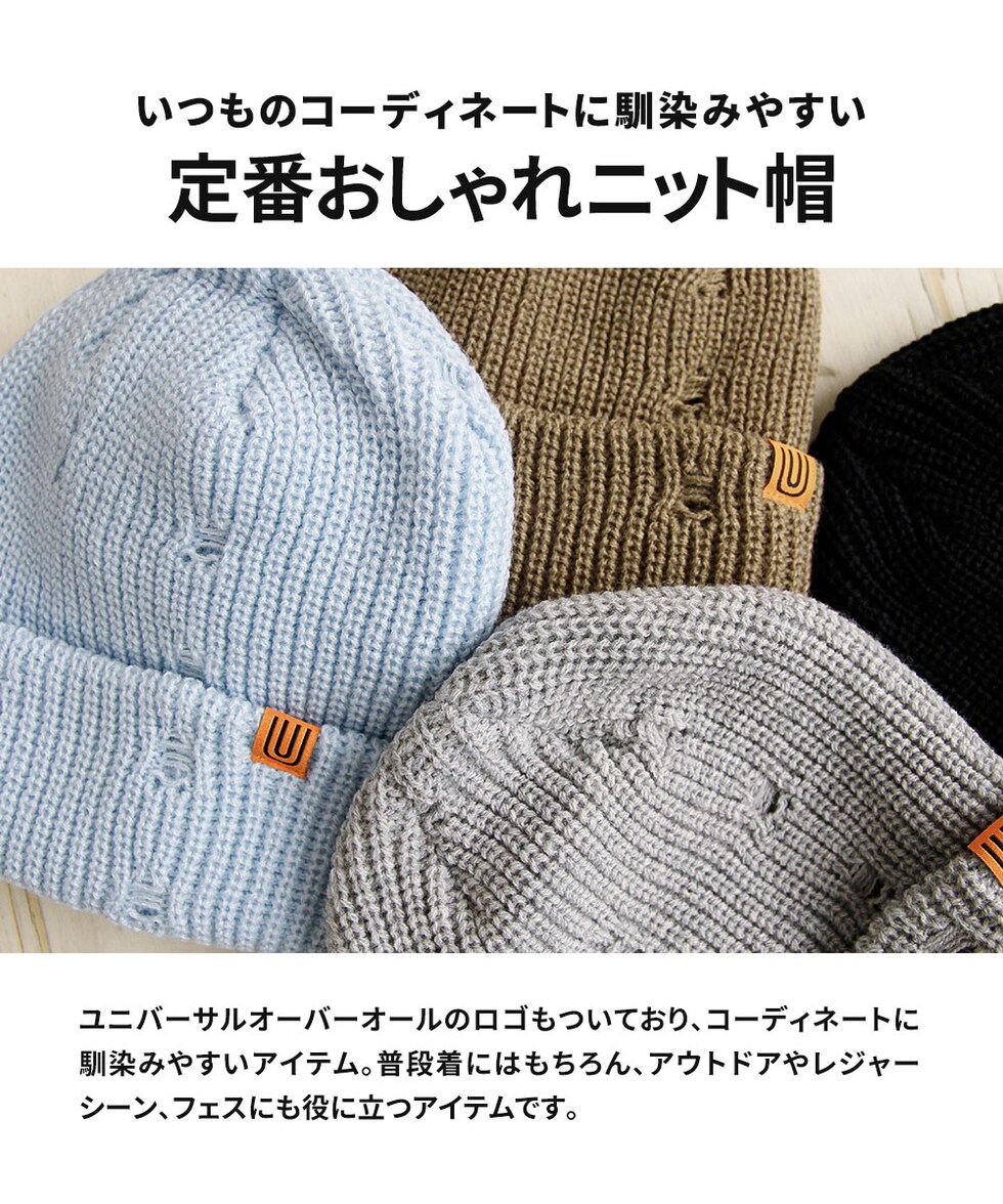 ユニバーサルオーバーオール ニット帽 メンズ レディース カジュアル おしゃれ 黒 ブラック UNIVERSAL OVERALL UO dw1729