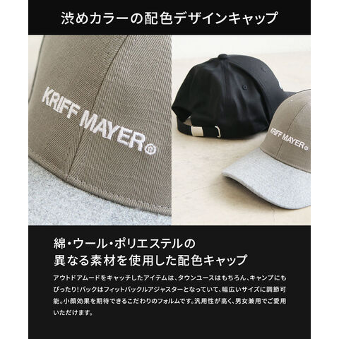 ■綿・ウール・ポリエステルの異なる素材を使用した配色キャップ。