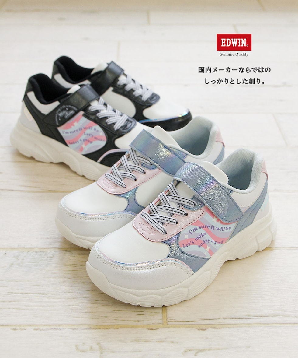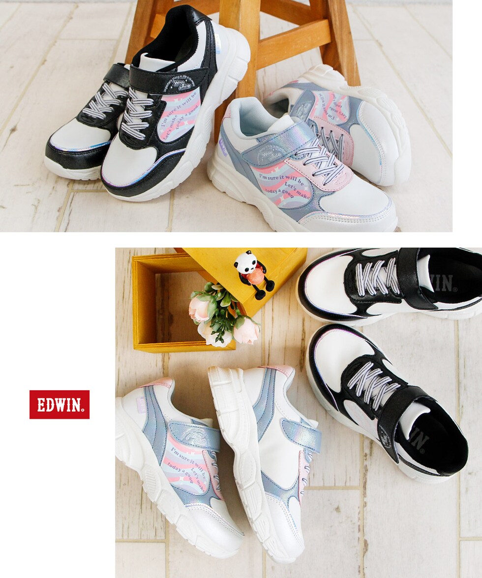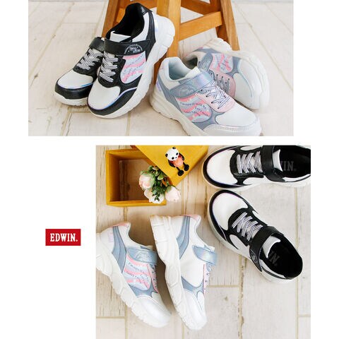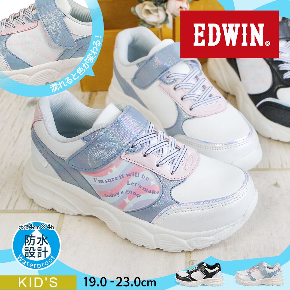 エドウィン 子供 靴 スニーカー キッズ ジュニア 色が変わる 防水 軽量 ローカット シューズ 黒 ブラック 白 通学 3674 edwin