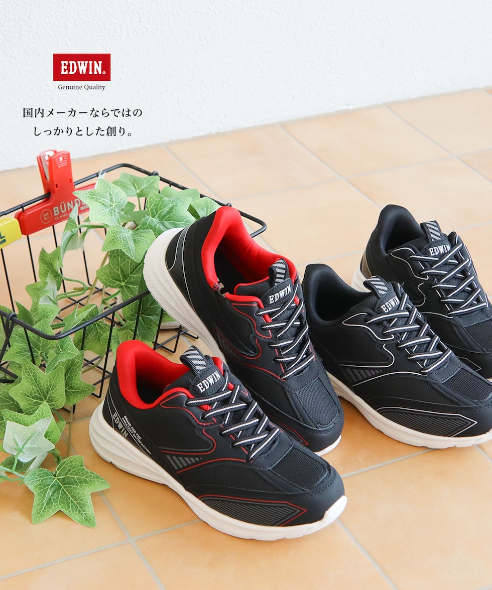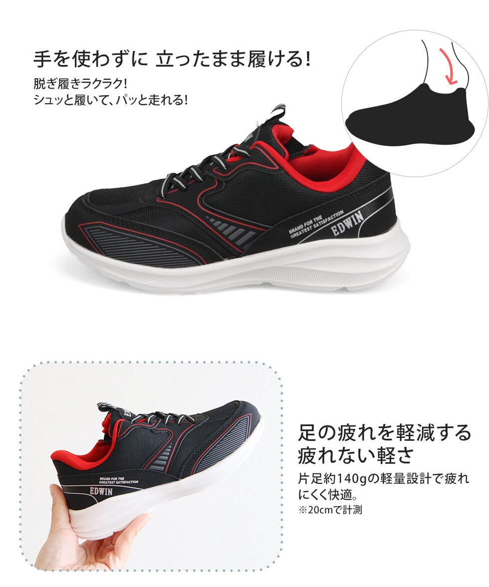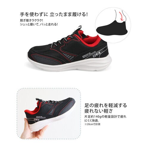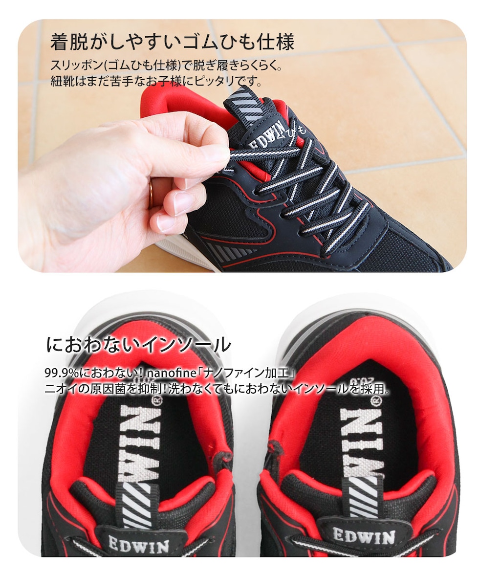 エドウィン スリッポン スニーカー キッズ 男の子 ハンズフリー ジュニア 子供靴 運動靴 消臭 軽量 黒 ホワイト EDWIN edw-3681