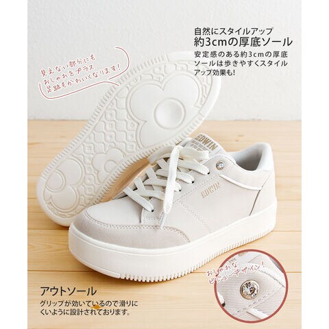 エドウィン スニーカー レディース ローカット 軽量 履きやすい 靴 カジュアル 黒 ブラック アイボリー ベージュ EDWIN 4325