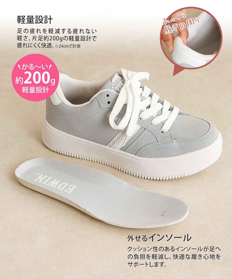 エドウィン スニーカー レディース ローカット 歩きやすい シンプル カジュアル 履きやすい 靴 ファッション 厚底シューズ EDWIN 4374