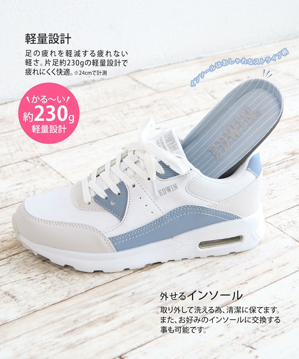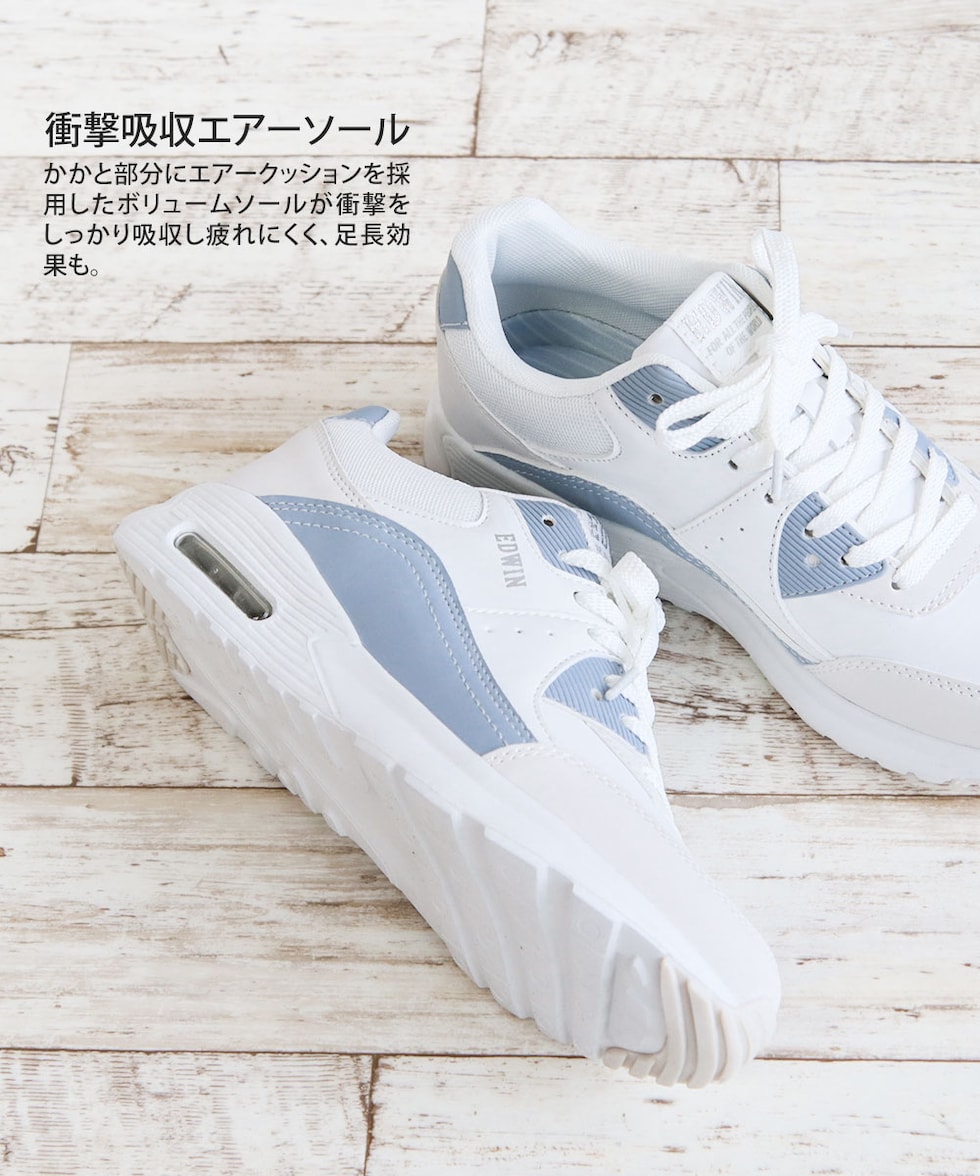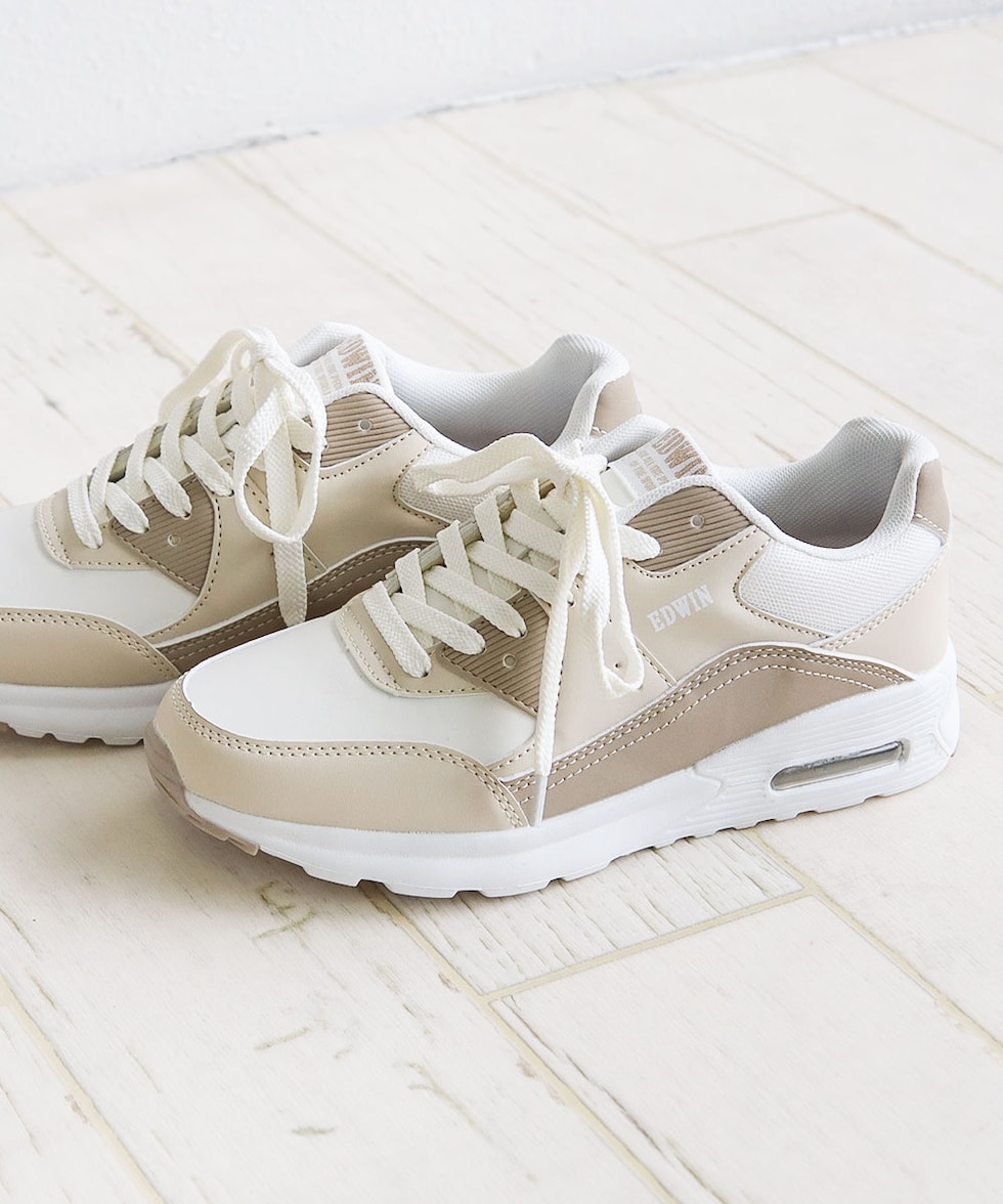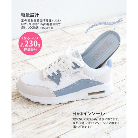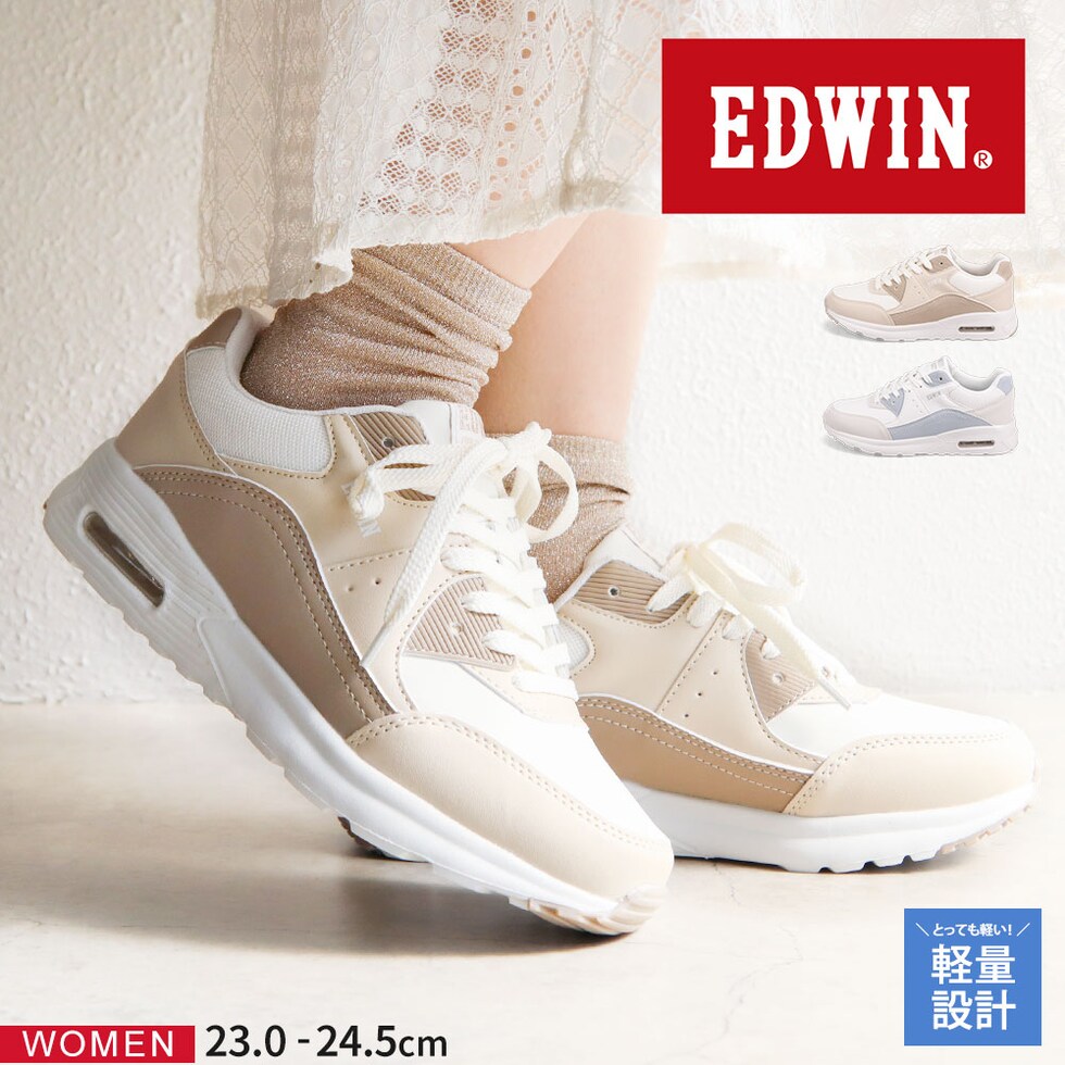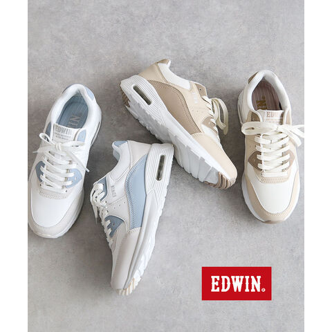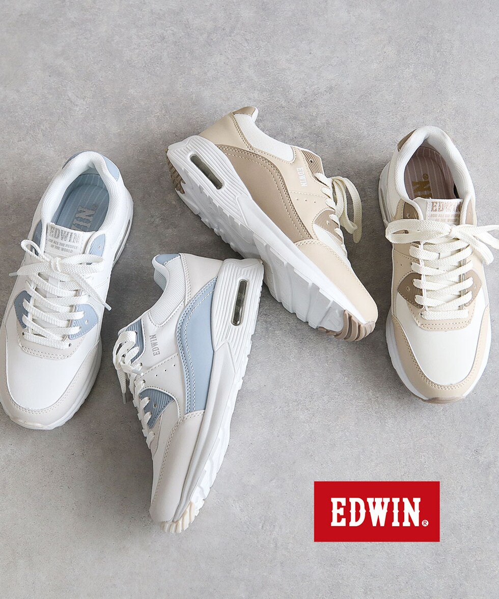 エドウィン スニーカー レディース ローカット 厚底 エアーソール 軽量 履きやすい 靴 カジュアル ベージュ 白 ブルー EDWIN 4654