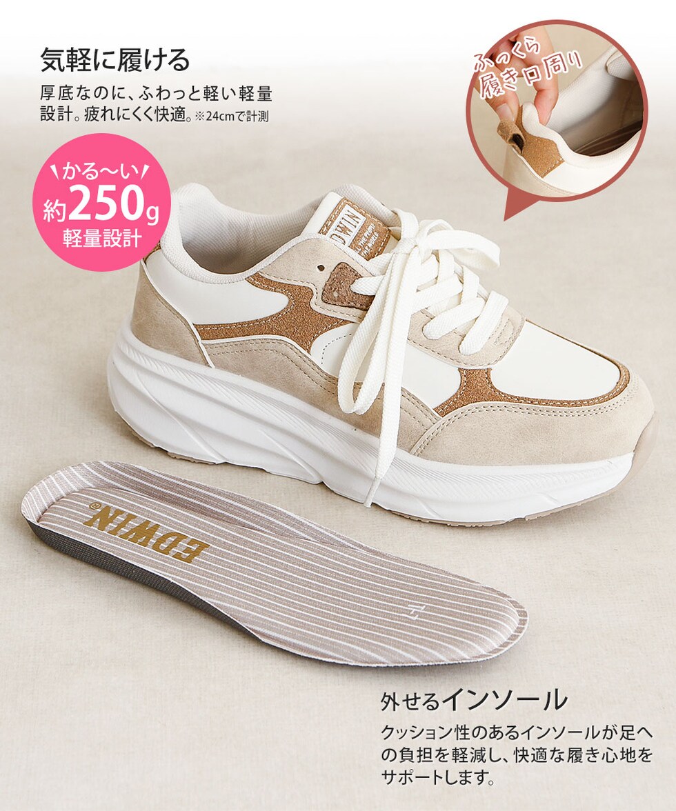 エドウィン スニーカー レディース ローカット 歩きやすい クッション カジュアル おしゃれ 靴 ファッション 厚底シューズ EDWIN 4655