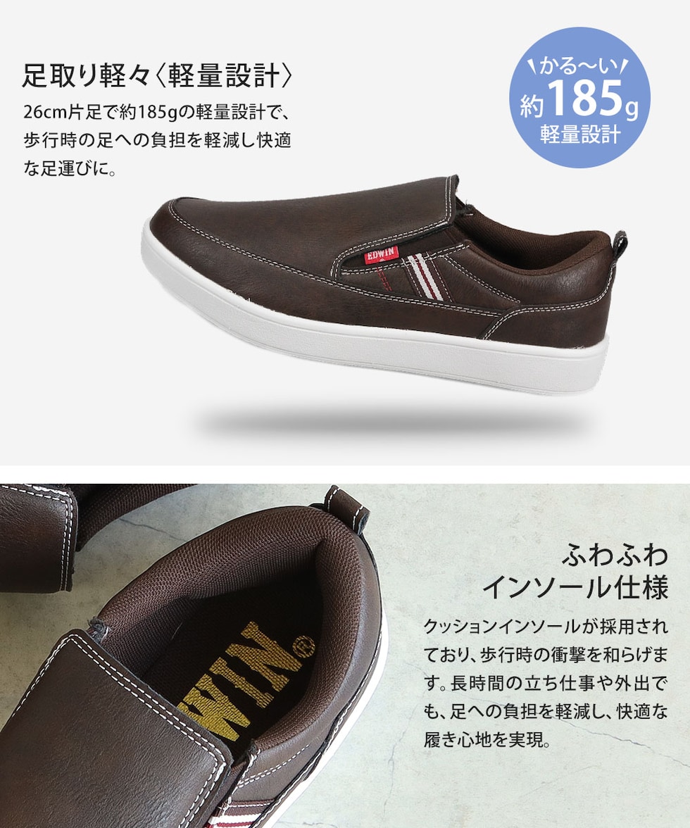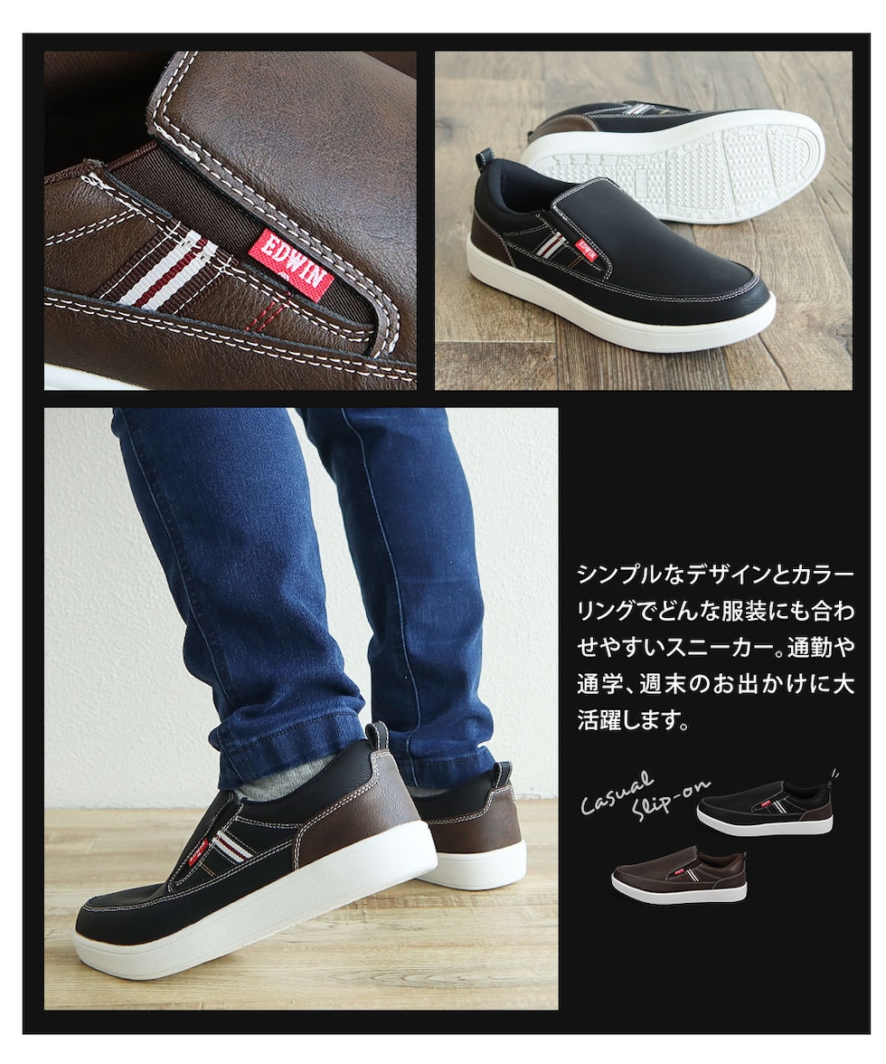 エドウィン スリッポン メンズ 軽い ローカット 疲れにくい おしゃれ カジュアル 靴 シューズ 黒 ブラック ブラウン EDWIN 7050
