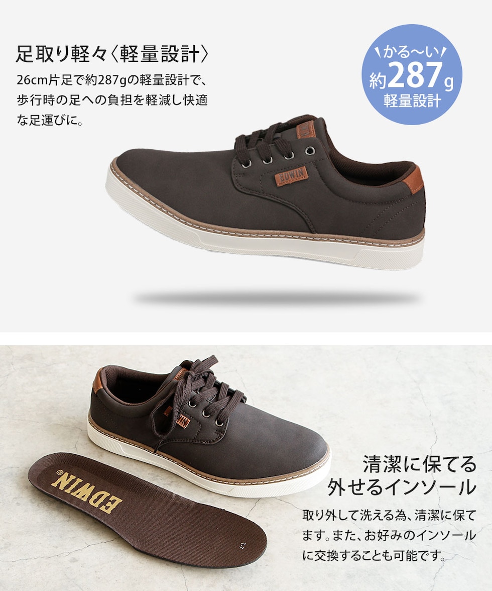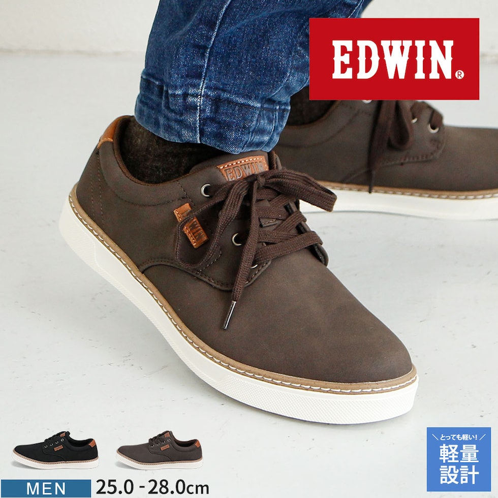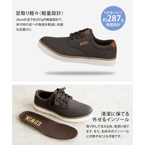 エドウィン スニーカー メンズ ローカット 履きやすい 歩きやすい 軽い クッションインソール 軽量 シューズ フォーマル 大人 オンオフ兼用 靴 紐 7106 EDWIN