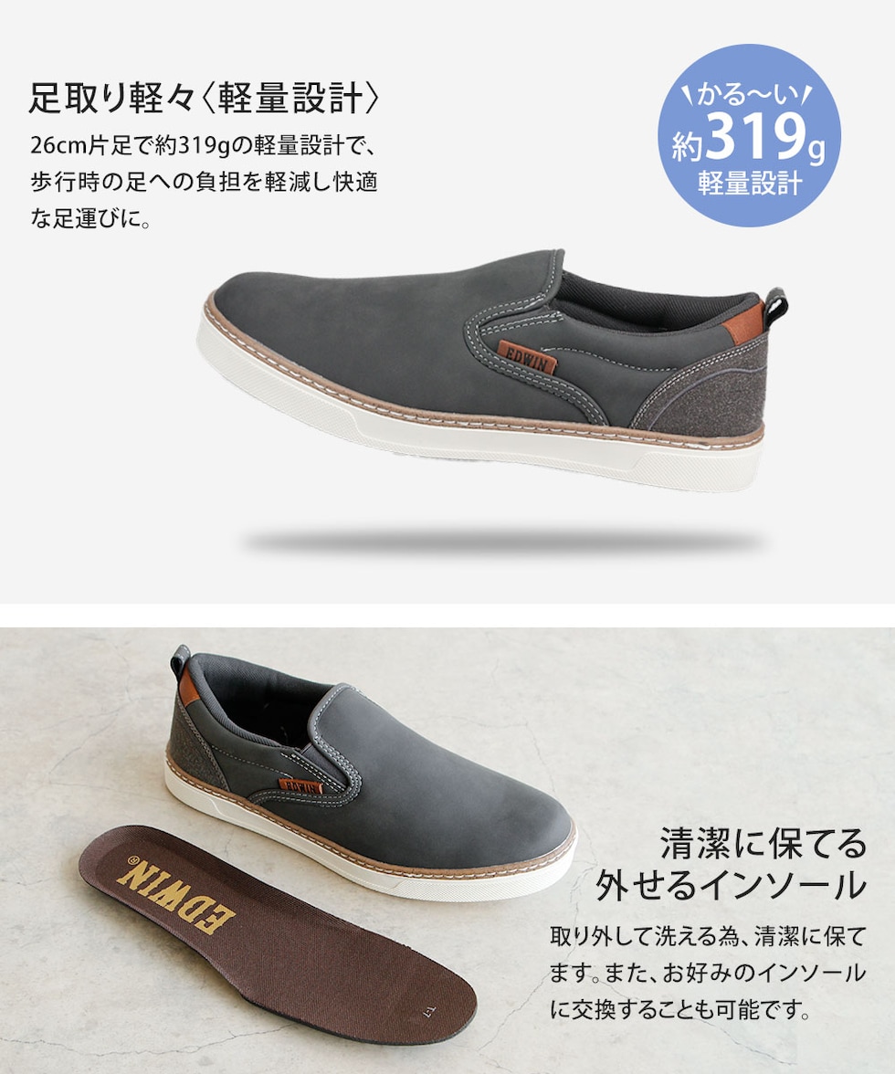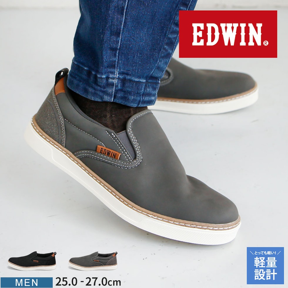 エドウィン スニーカー メンズ スリッポン ローカット 紐なし 履きやすい 歩きやすい 軽い クッションインソール シューズ 靴 カジュアル 大人 7109 EDWIN
