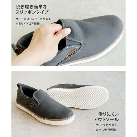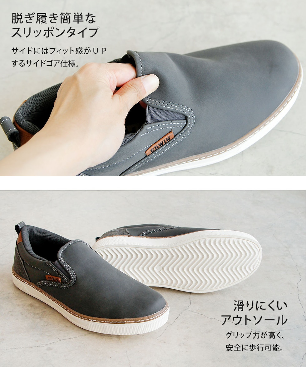 柔らかい素材とフィット感のある設計で、長時間の外出も快適です。スリッポンタイプなので、脱ぎ履きもスムーズ。