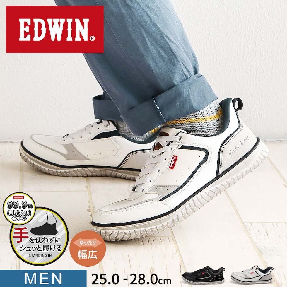 エドウィン スタンディングイン スリッポン スニーカー メンズ 靴 ハンズフリー シューズ 黒 ブラック 白 ホワイト EDWIN EDW-7284