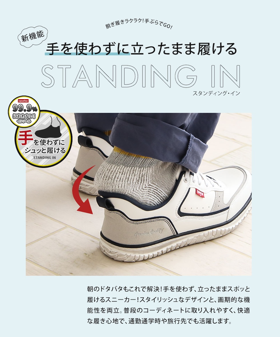 手を使わずに 立ったまま履ける!脱ぎ履きラクラク!