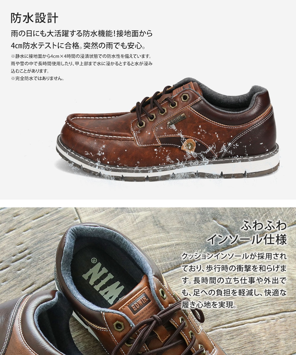 エドウィン スニーカー メンズ 防水 ローカット 履きやすい おしゃれ カジュアル レイン 靴 シューズ 黒 ブラック ブラウン EDWIN 7984