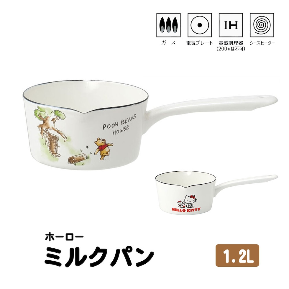 ミルクパン ホーロー 1.2L IH対応 ガス火 片手鍋 深鍋 両口 16cm 小さめ 女性 レディース レトロ 白 ディズニー サンリオ ENMP1