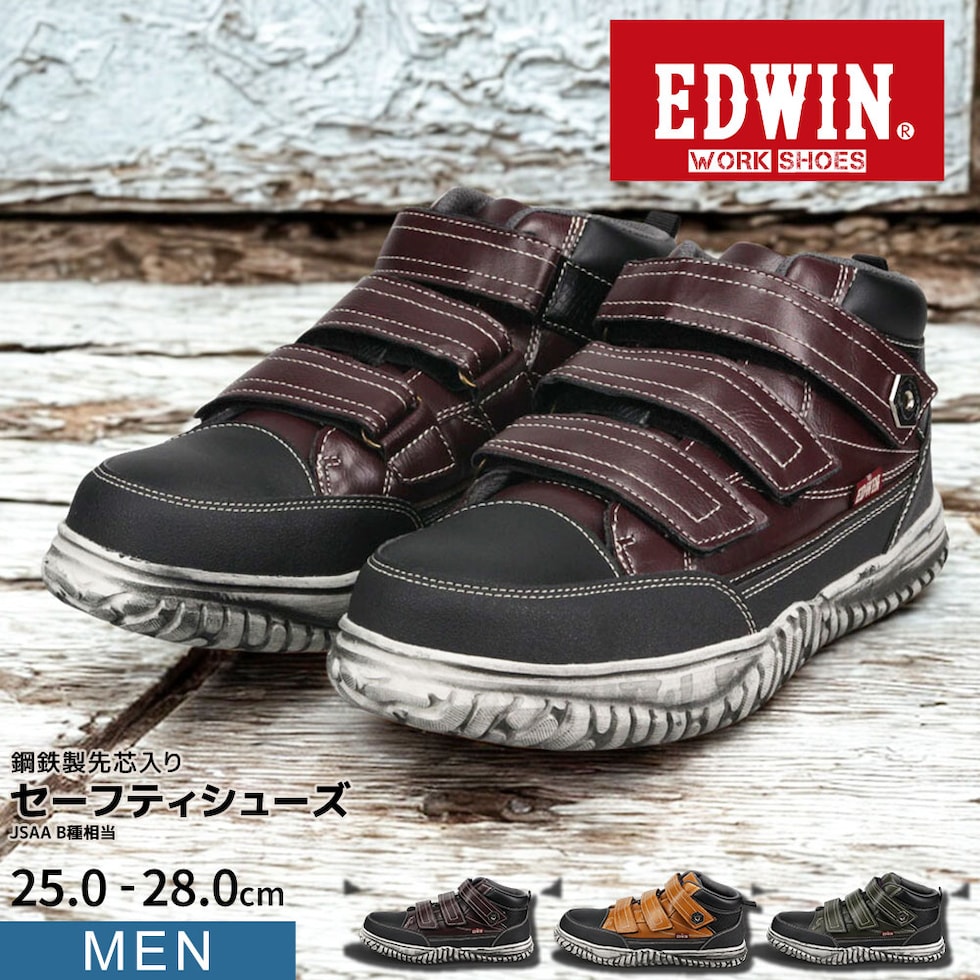 エドウィン 安全靴 セーフティシューズ 鉄芯入り 軽量 作業靴 ベルクロ スニーカー JSAA規格 B種相当 EDWIN 103