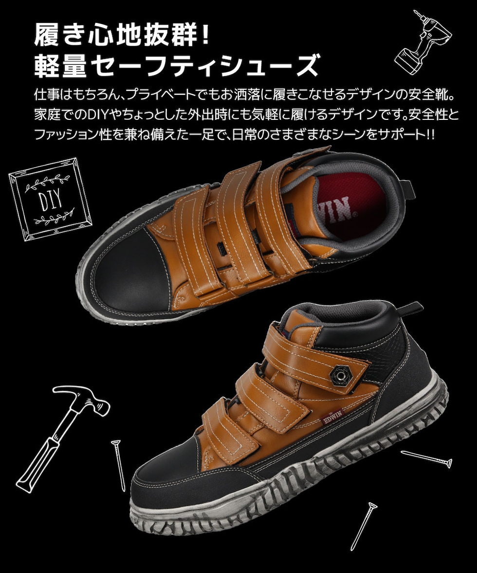一見して作業靴(安全靴)には見えないデザインで普段使いにもオススメ◎。