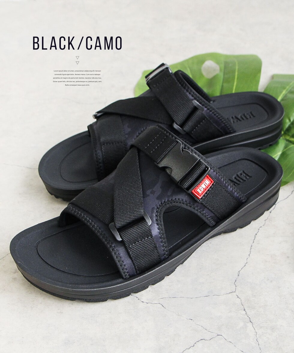 エドウィン サンダル メンズ 靴 スポーツ スライド レジャー アウトドア つっかけ カーキ ベージュ ブラック ネイビー 5111 EDWIN