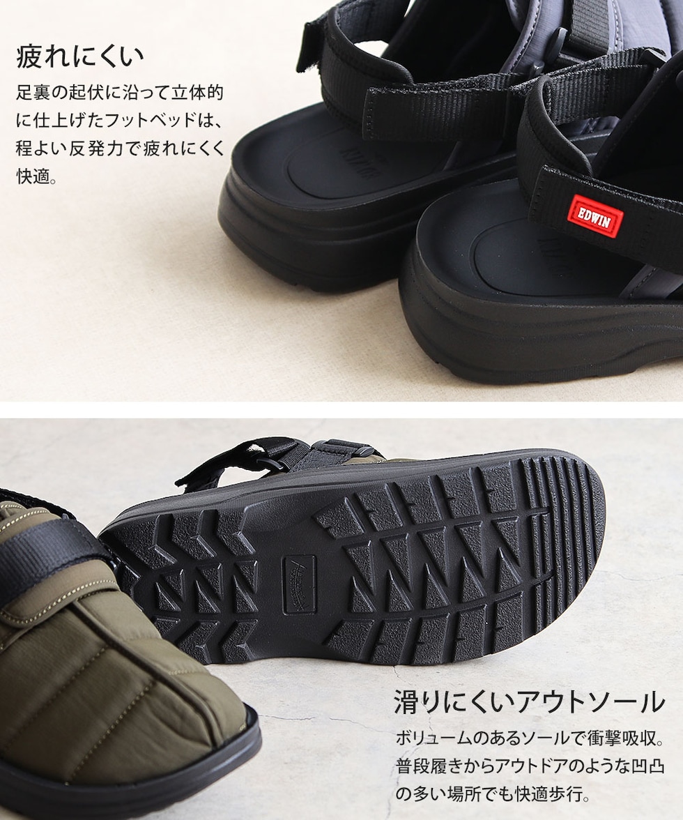 EDWINのアウトドアテイストを盛り込んだ、クロッグシューズ。