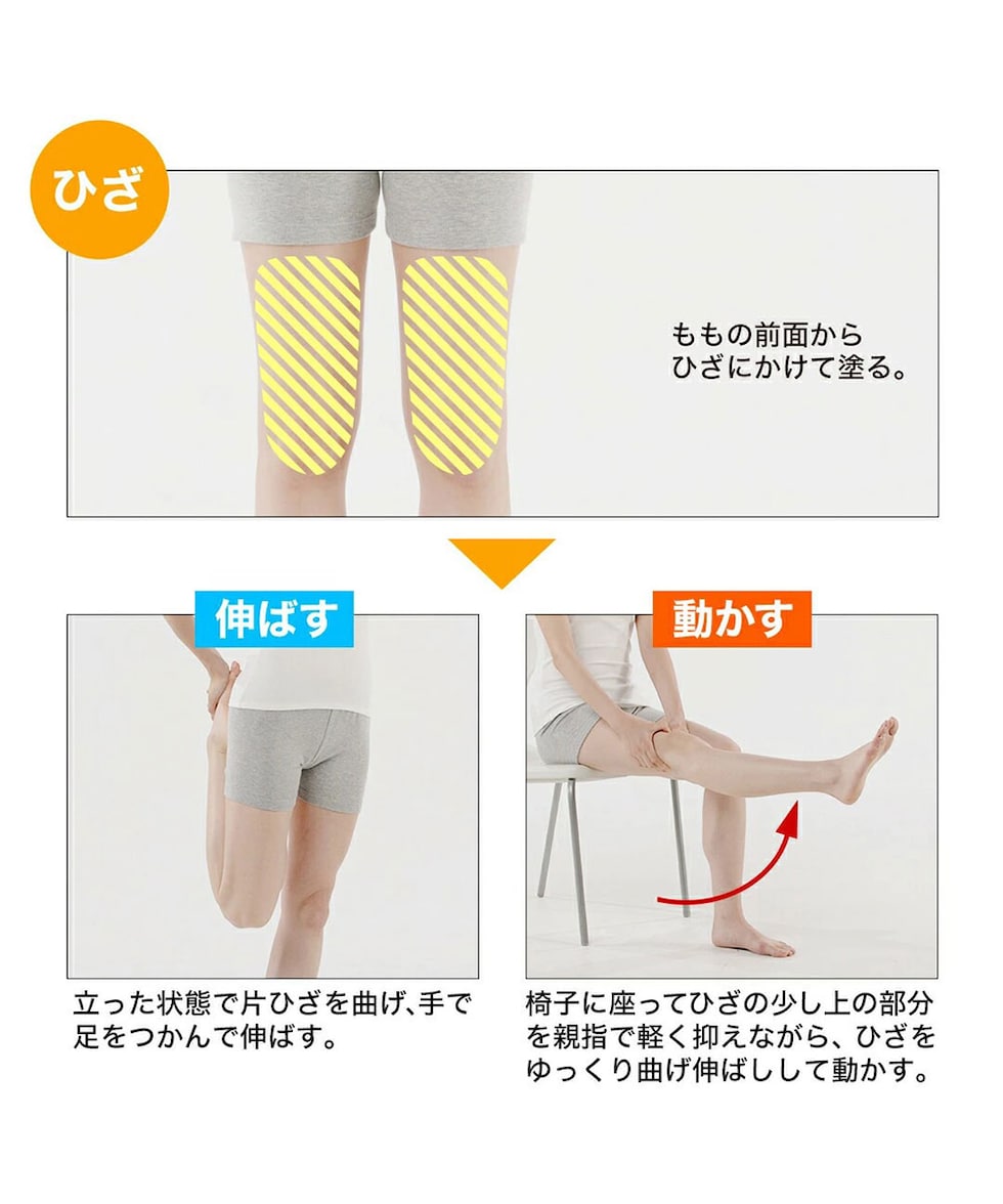 疲れやすい部分やコリを感じる箇所に塗り、その後ストレッチをすることで、成分が肌にスムーズに浸透し、心地よいリフレッシュ感をもたらします。