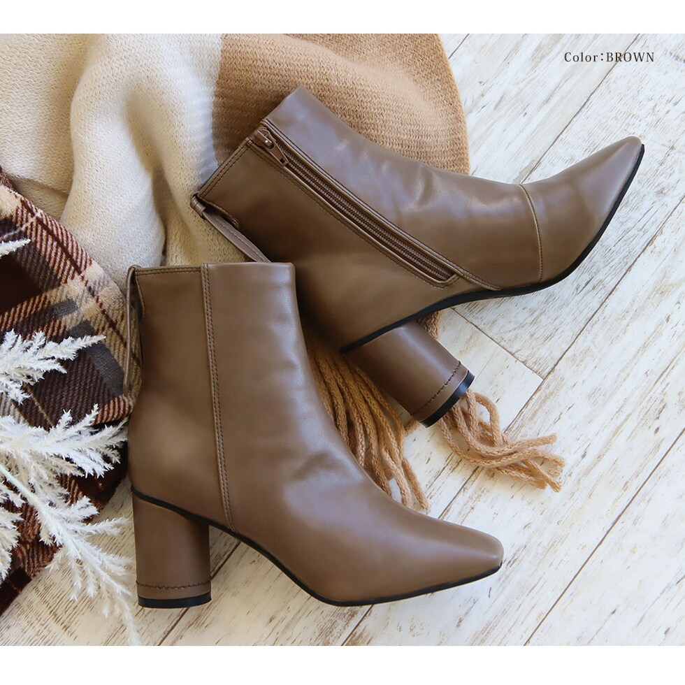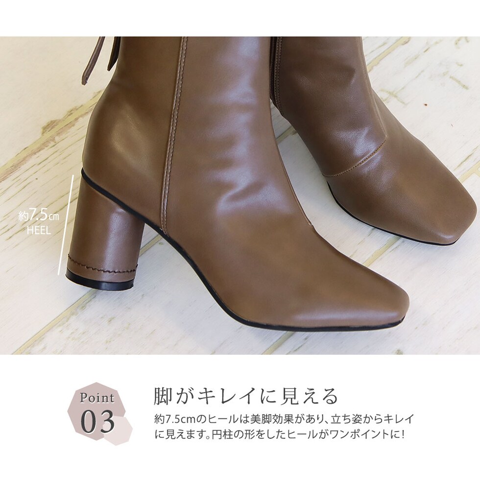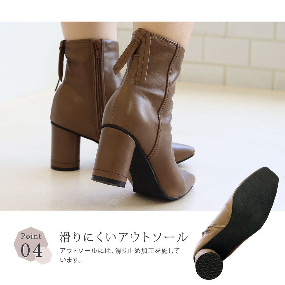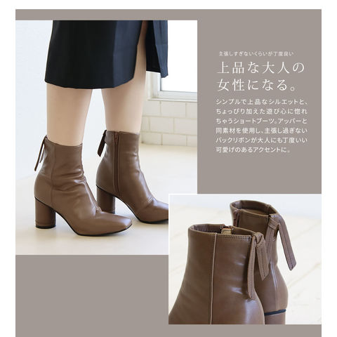 ショートブーツ レディース 歩きやすい 黒 ハイヒール ストレッチ ブーツ スクエアトゥ サイドファスナー スムース調 ミドルブーツ バックリボン ステッチ 円柱ヒール 丸ヒール おしゃれ 秋冬 大人 カジュアル トレンド ブラック ブラウン ベージュ ホワイト 6084のレビュー