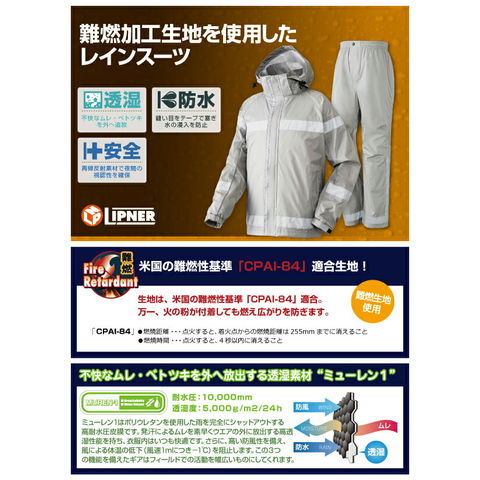 ロゴス LOGOS 難燃レインスーツスタンツ グレー メンズ 男性用 レインスーツ レインウェア 燃えにくい 雨合羽 カッパ 雨具 レイングッズ レインウエア レインジャケット レインジャンパー レインパンツ レインズボン 防水ウエアー 防水ウェアー アウター