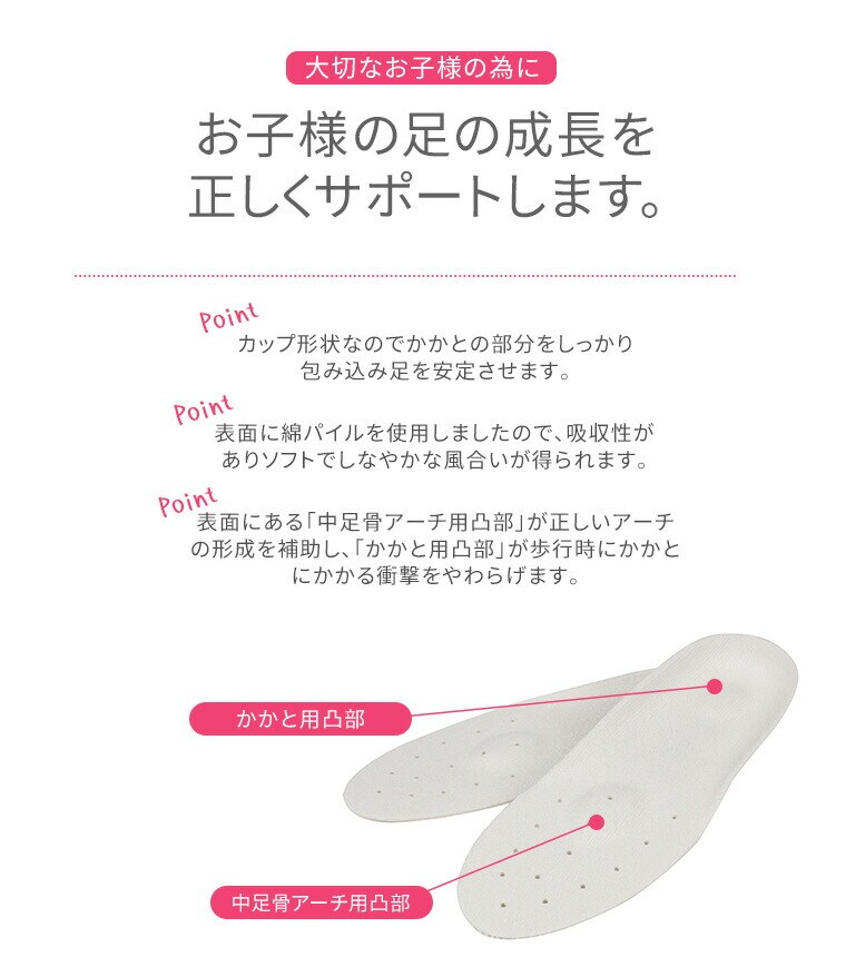 歩行時の足の動きを安定させ、お子様の足の成長を正しくサポートします。