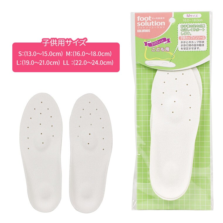 コロンブス フットソリューション 子供カップインソール 綿パイル 吸水性 サポート 中敷き インソール 子供 衝撃 吸収 かかと サポート カップインソール エイジフィット 安定感 こども ホワイト 白 洗い替え