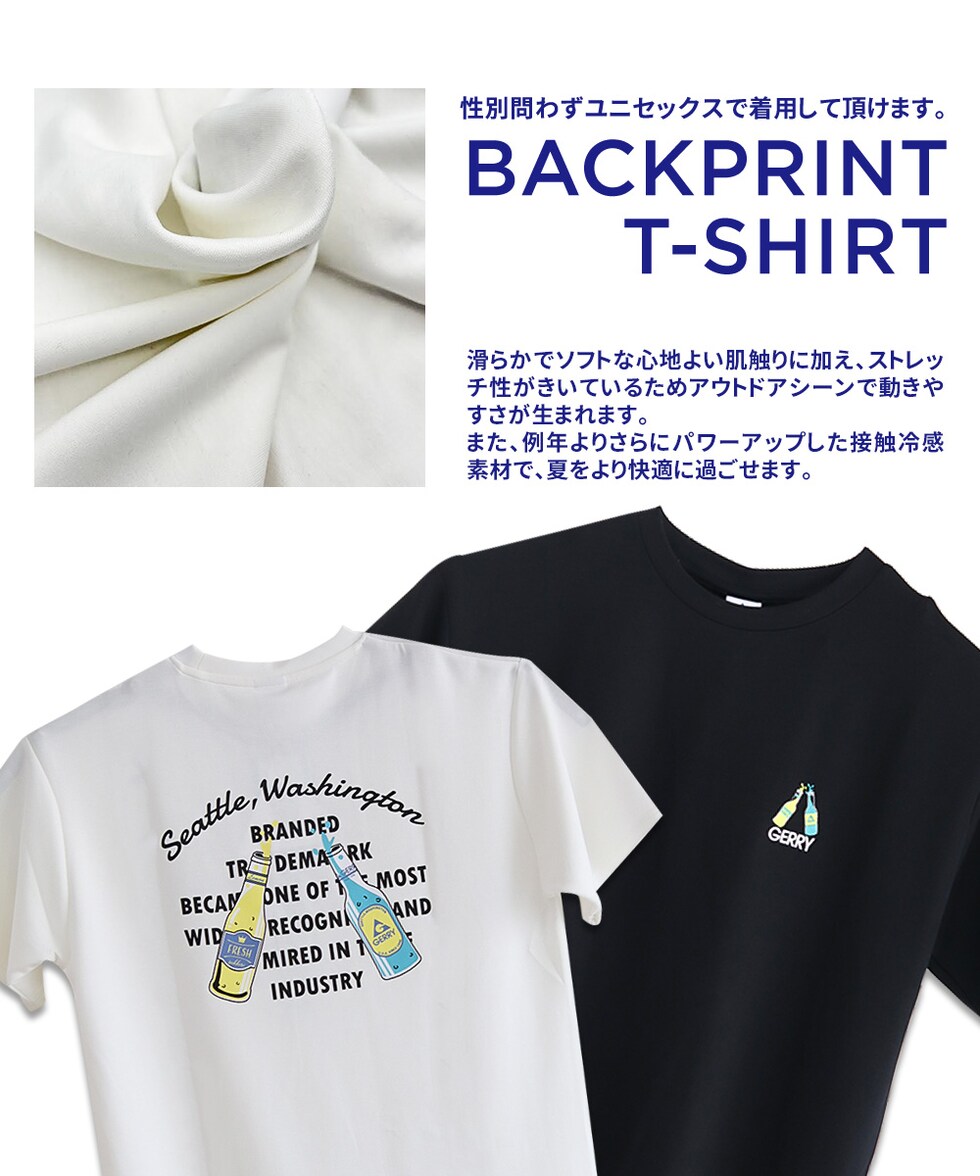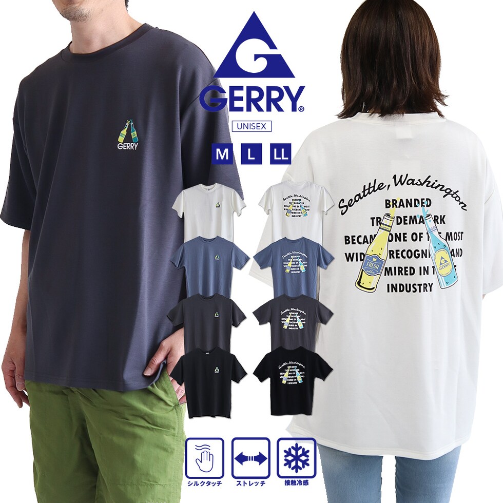 ジェリー tシャツ 半袖 冷感とろみポンチ オーバーサイズ クルーネック バックプリント 白 黒 ブルー グレー ge25su14 gerry