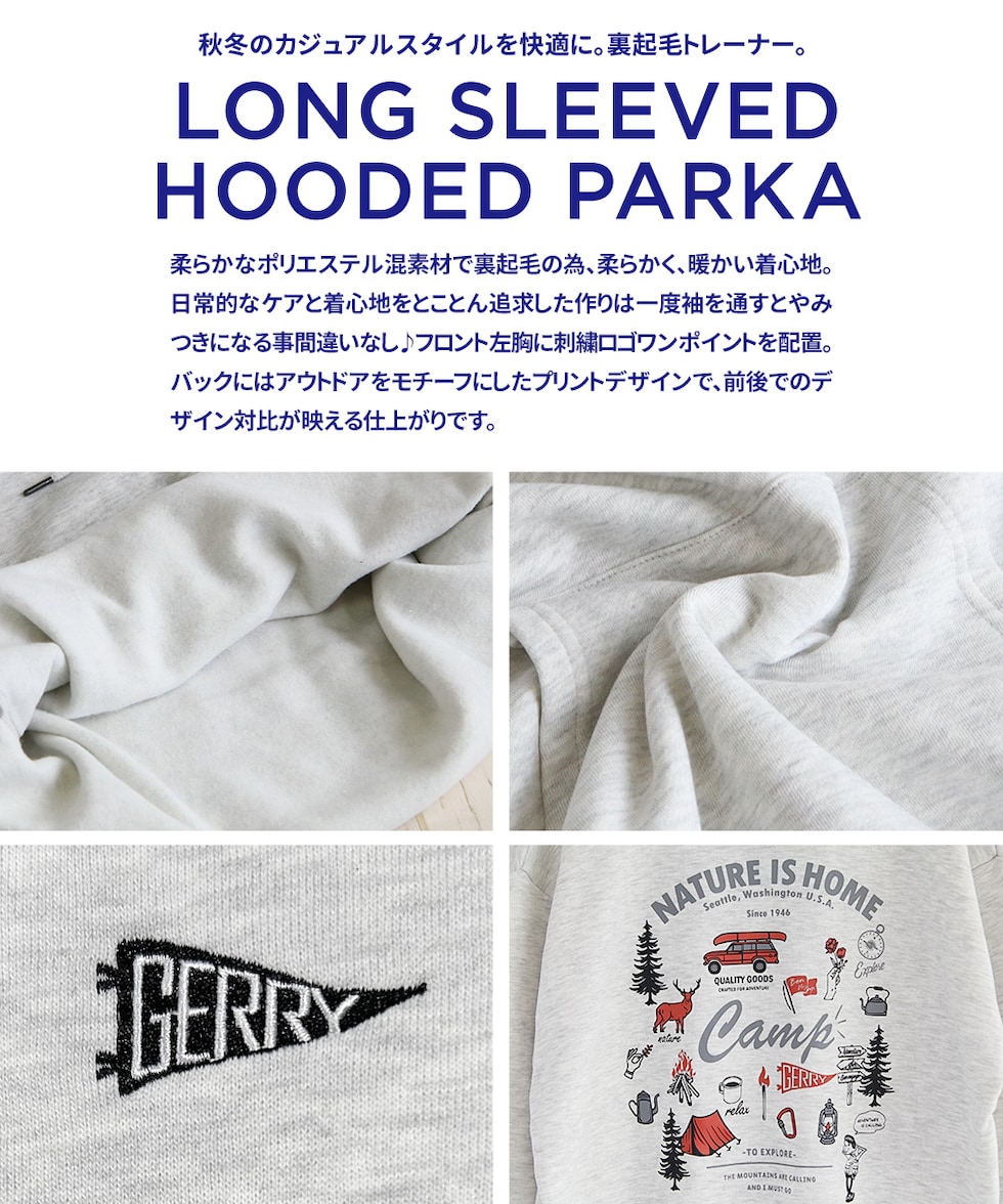 GERRYの裏起毛フーデットパーカー。